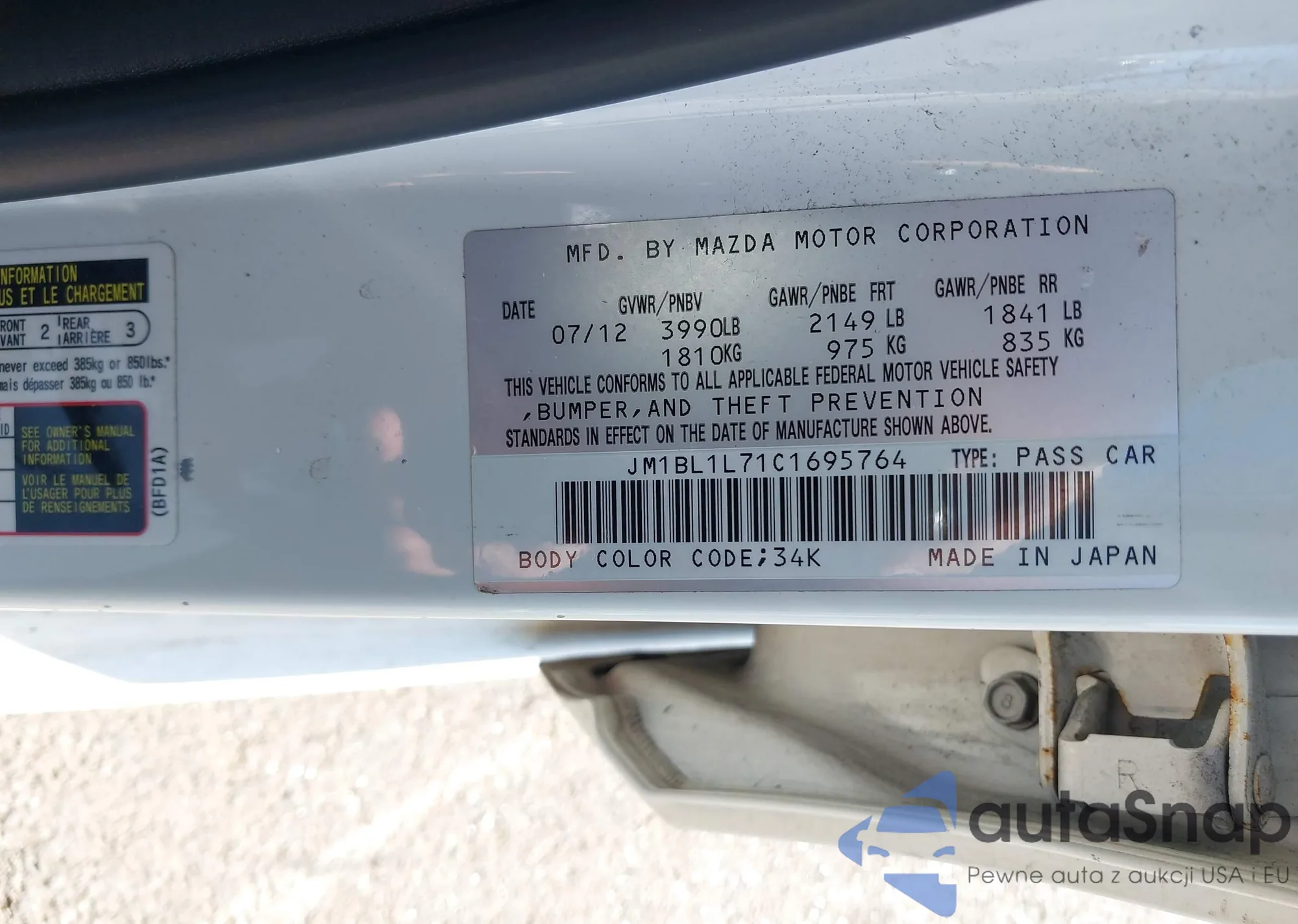 LOT: 41741933 VIN: JM1BL1L71C1695764