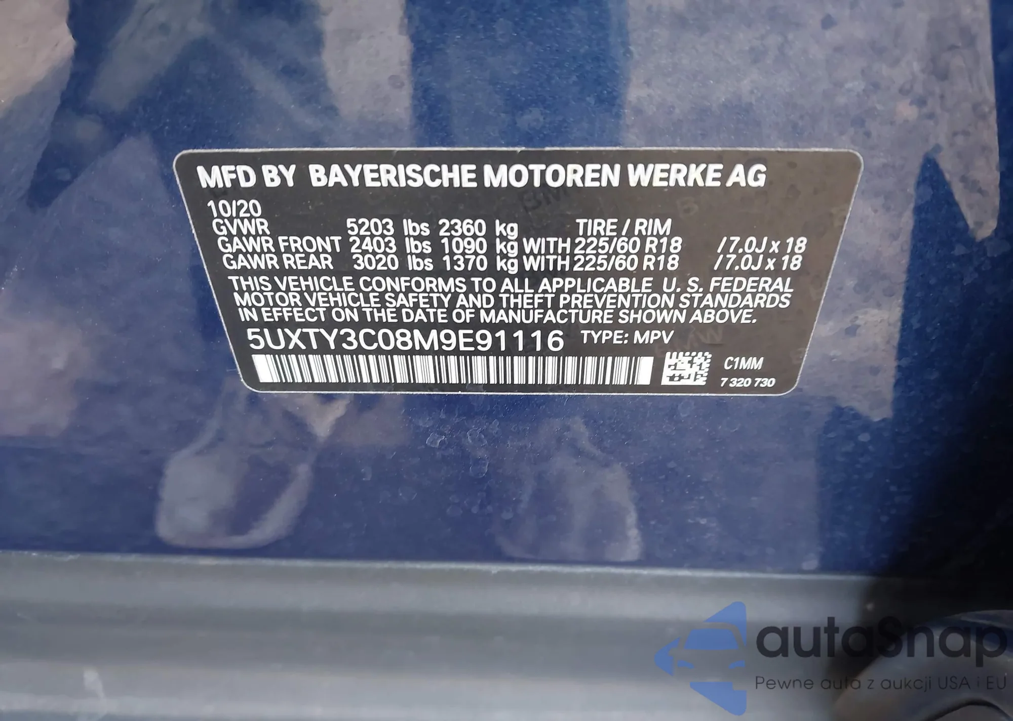 • VIN 5UXTY3C08M9E91116