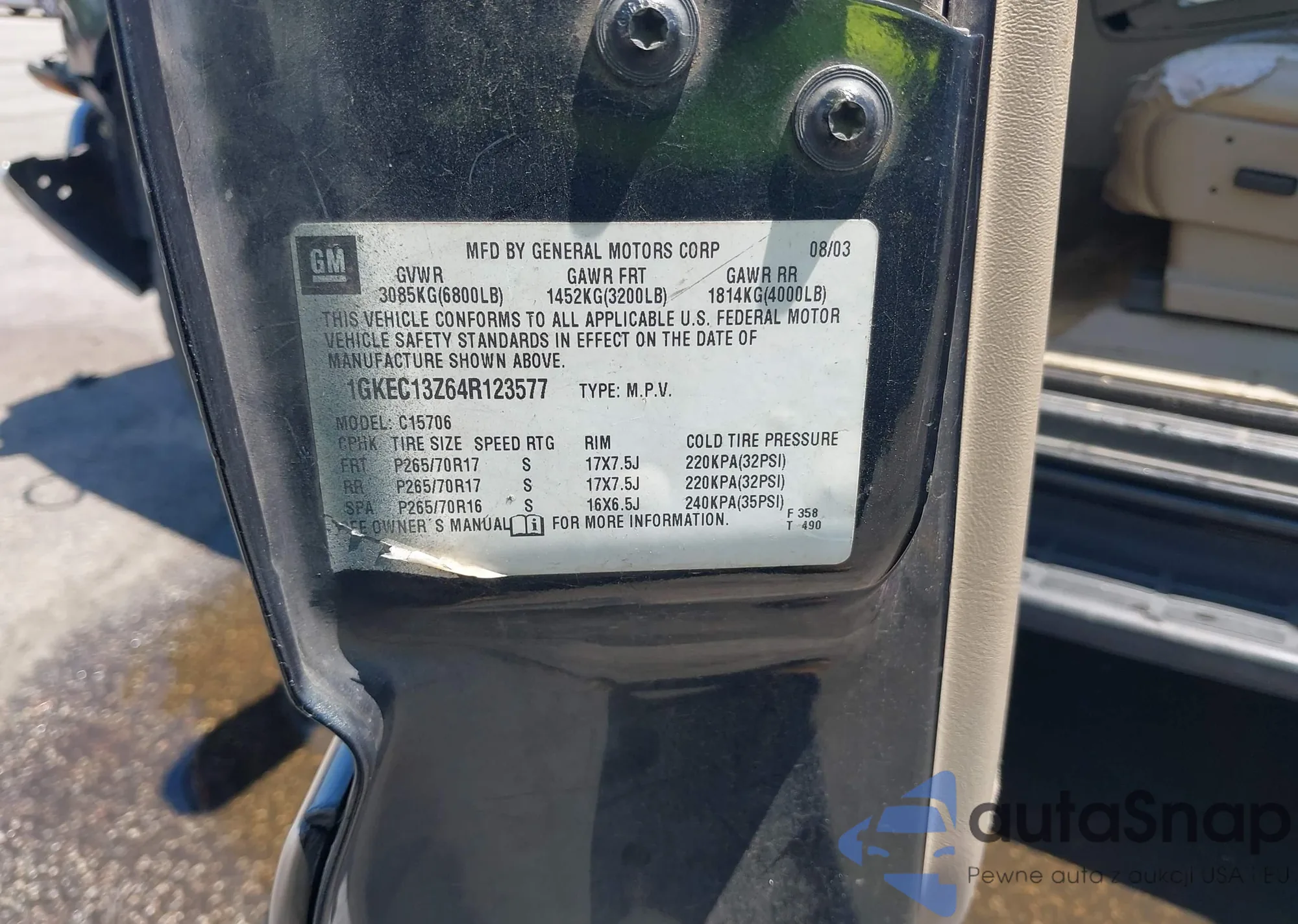 LOT: 42235349 VIN: 1GNDS13S272103845