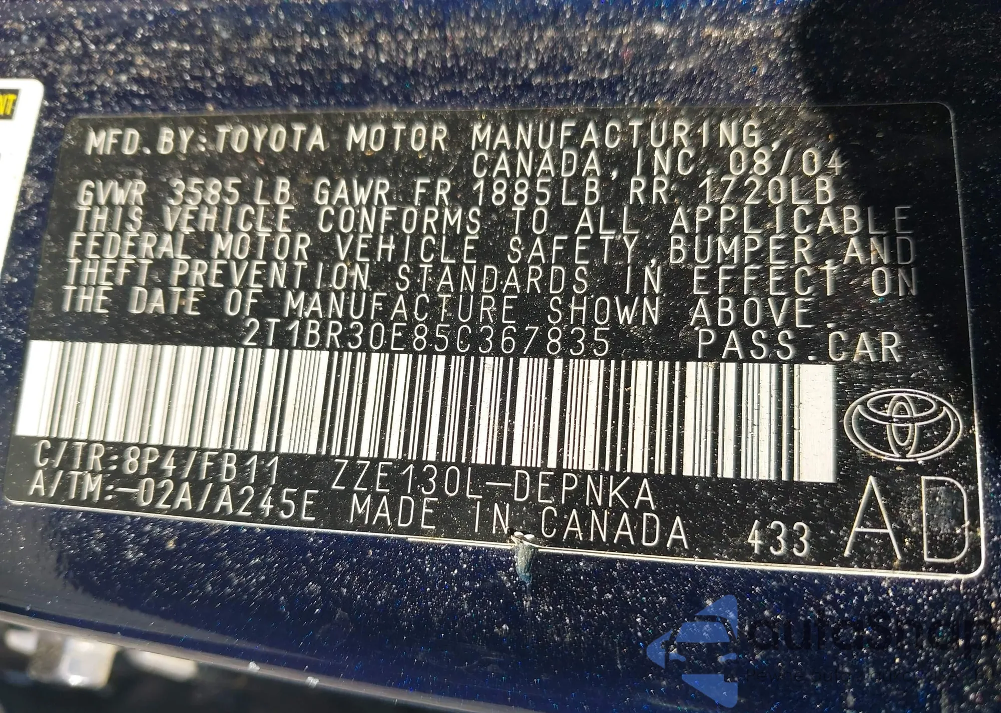 • VIN 2T1BR30E85C367835