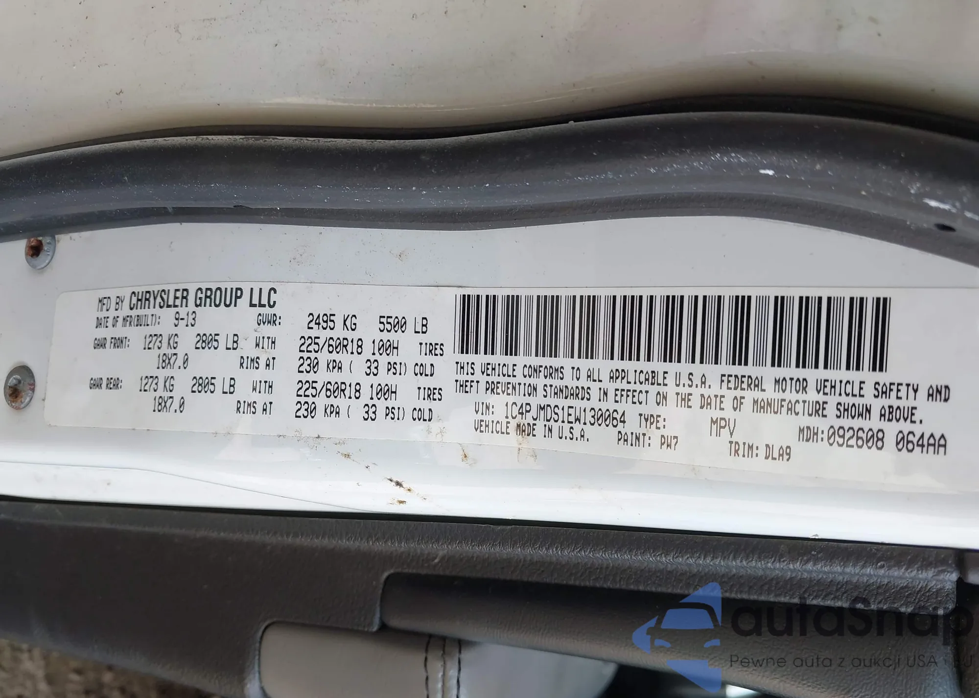 LOT: 42431273 VIN: 1C4PJMDS1EW130064