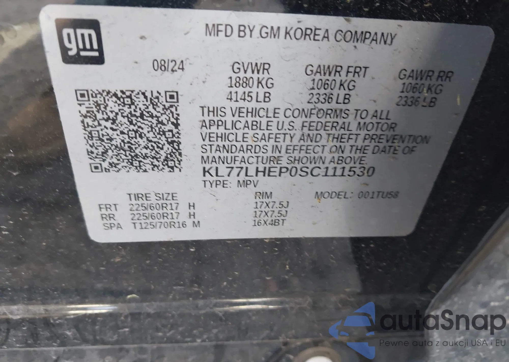 LOT: 42067187 VIN: KL77LHEP0SC111530