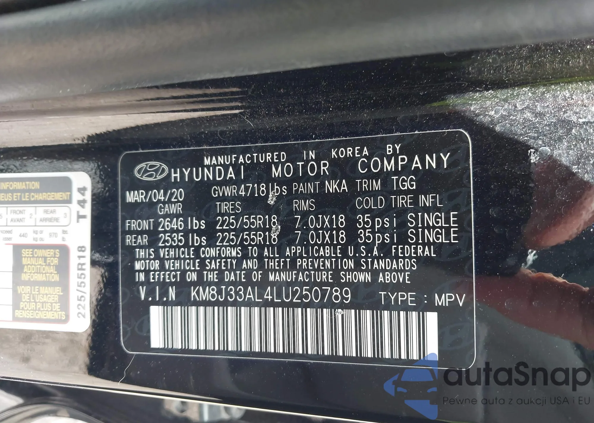 • VIN KM8J33AL4LU250789