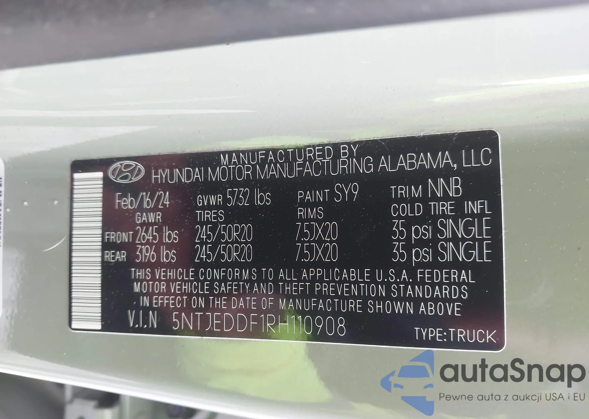• VIN 5NTJEDDF1RH110908