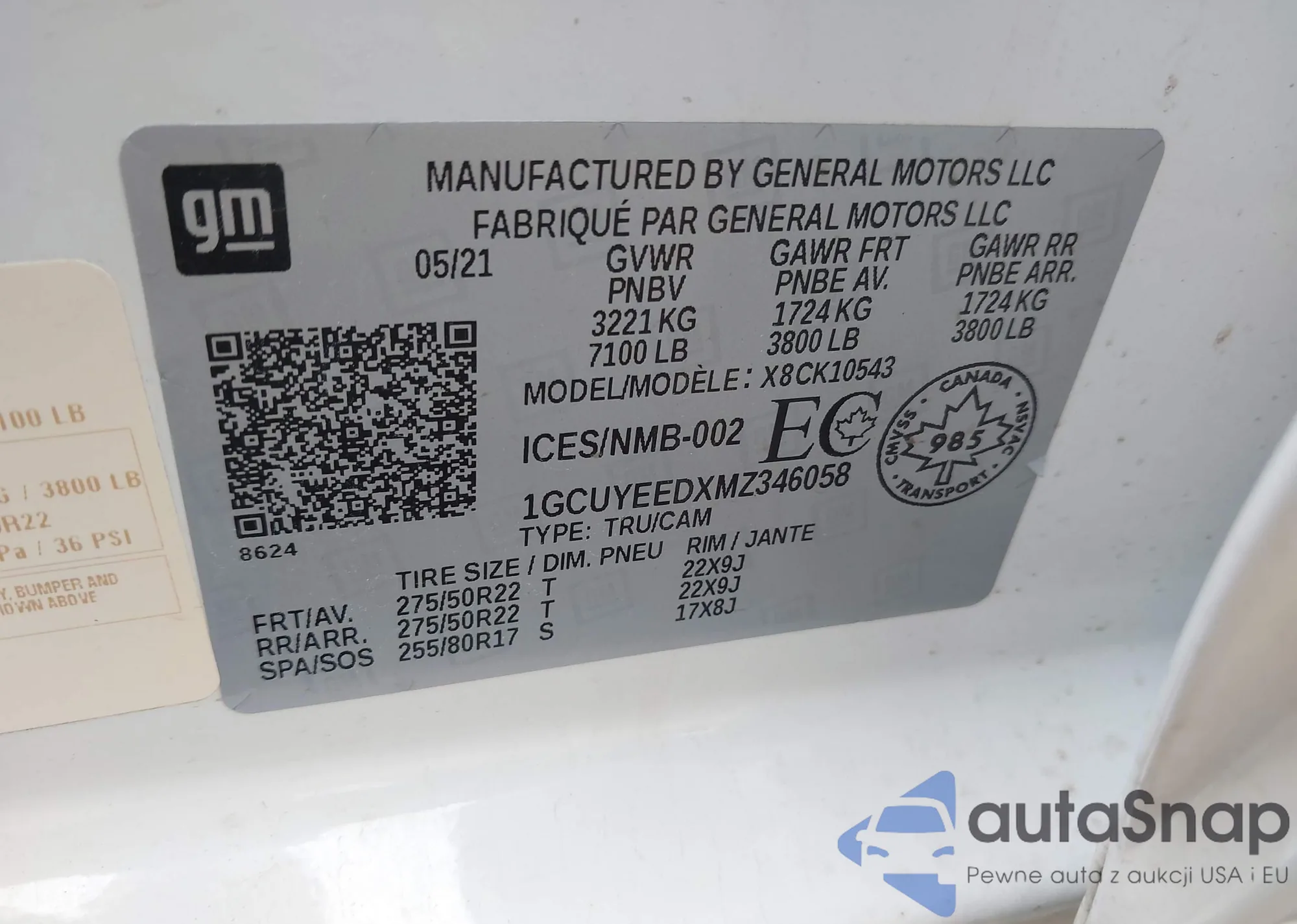 • VIN 1GCUYEEDXMZ346058