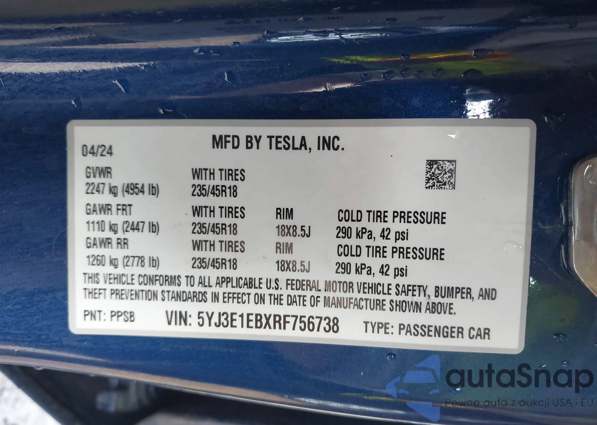• VIN 5YJ3E1EBXRF756738