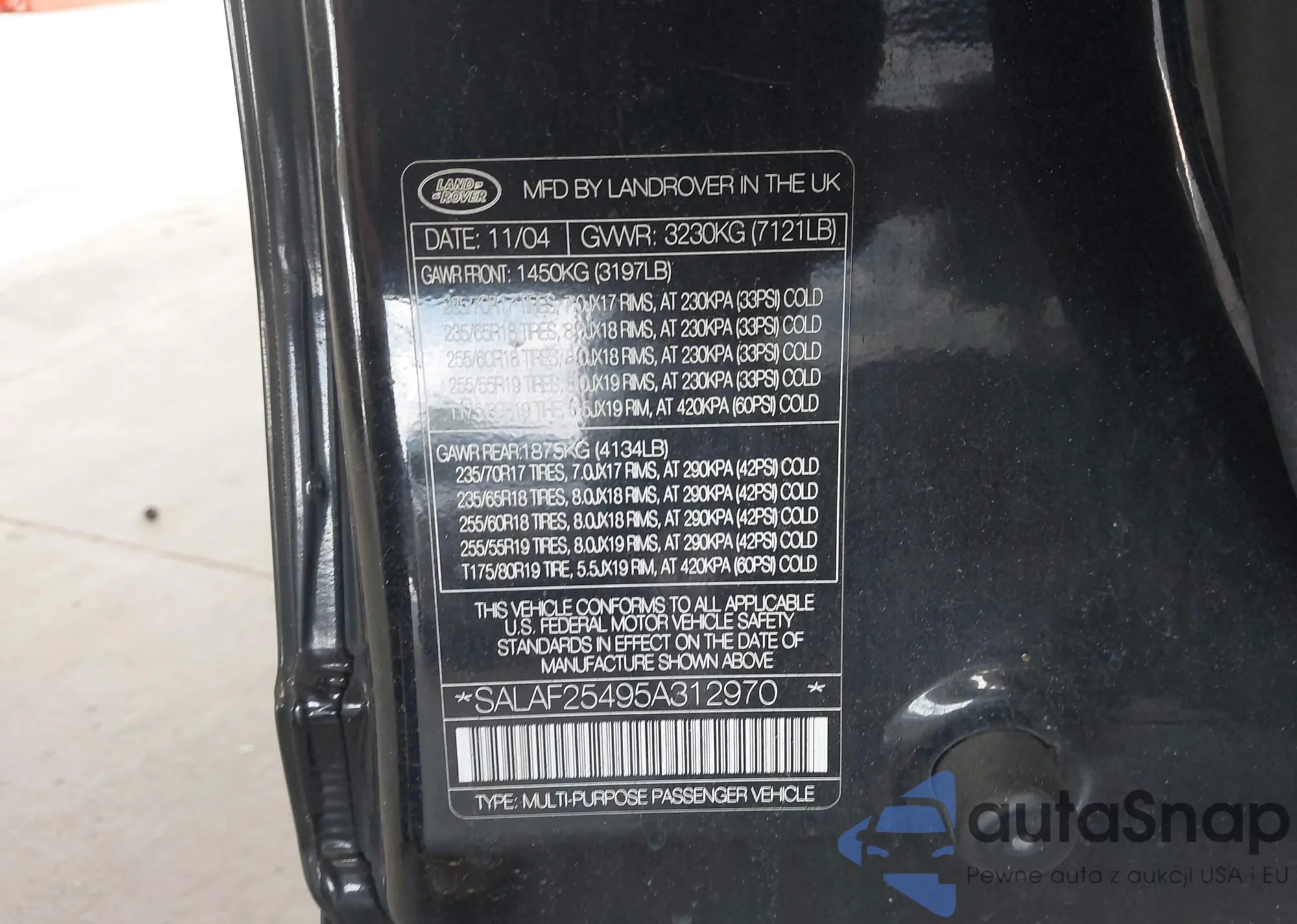 • VIN SALAF25495A312970