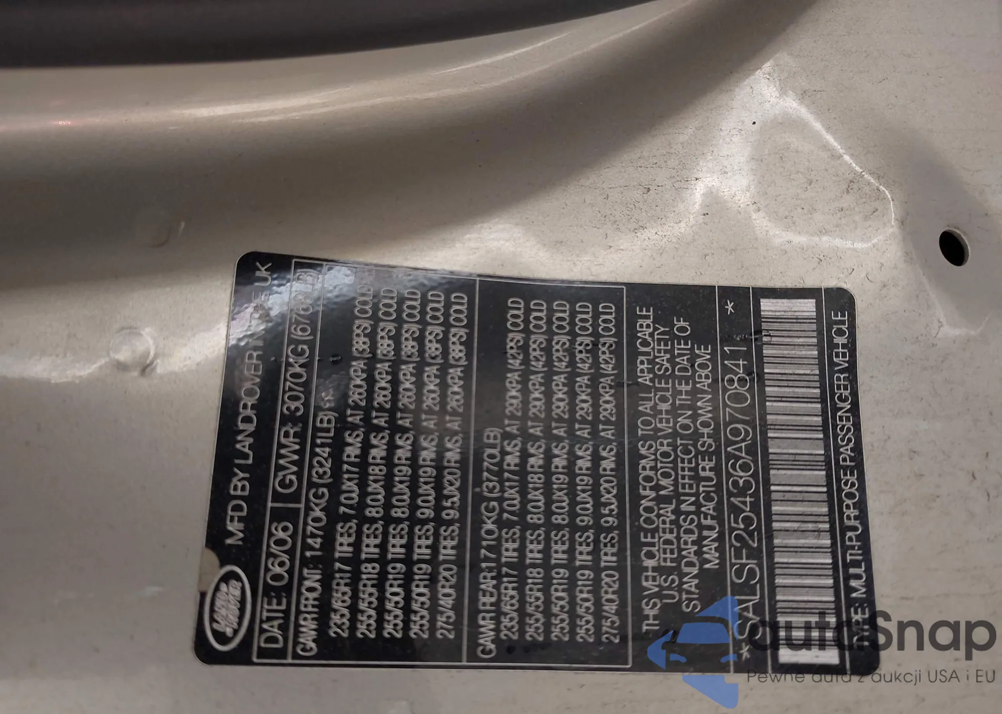 • VIN SALSF25436A970841