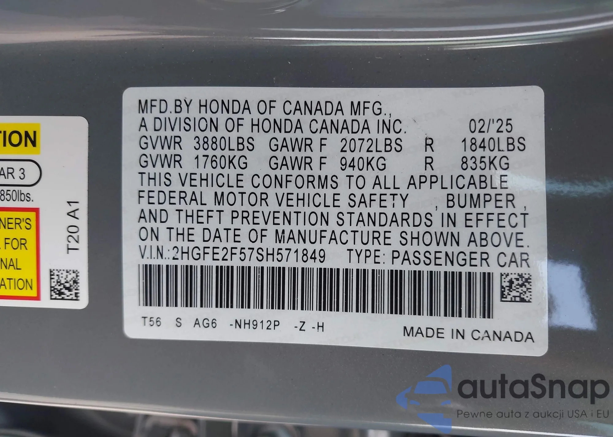 • VIN 2HGFE2F57SH571849