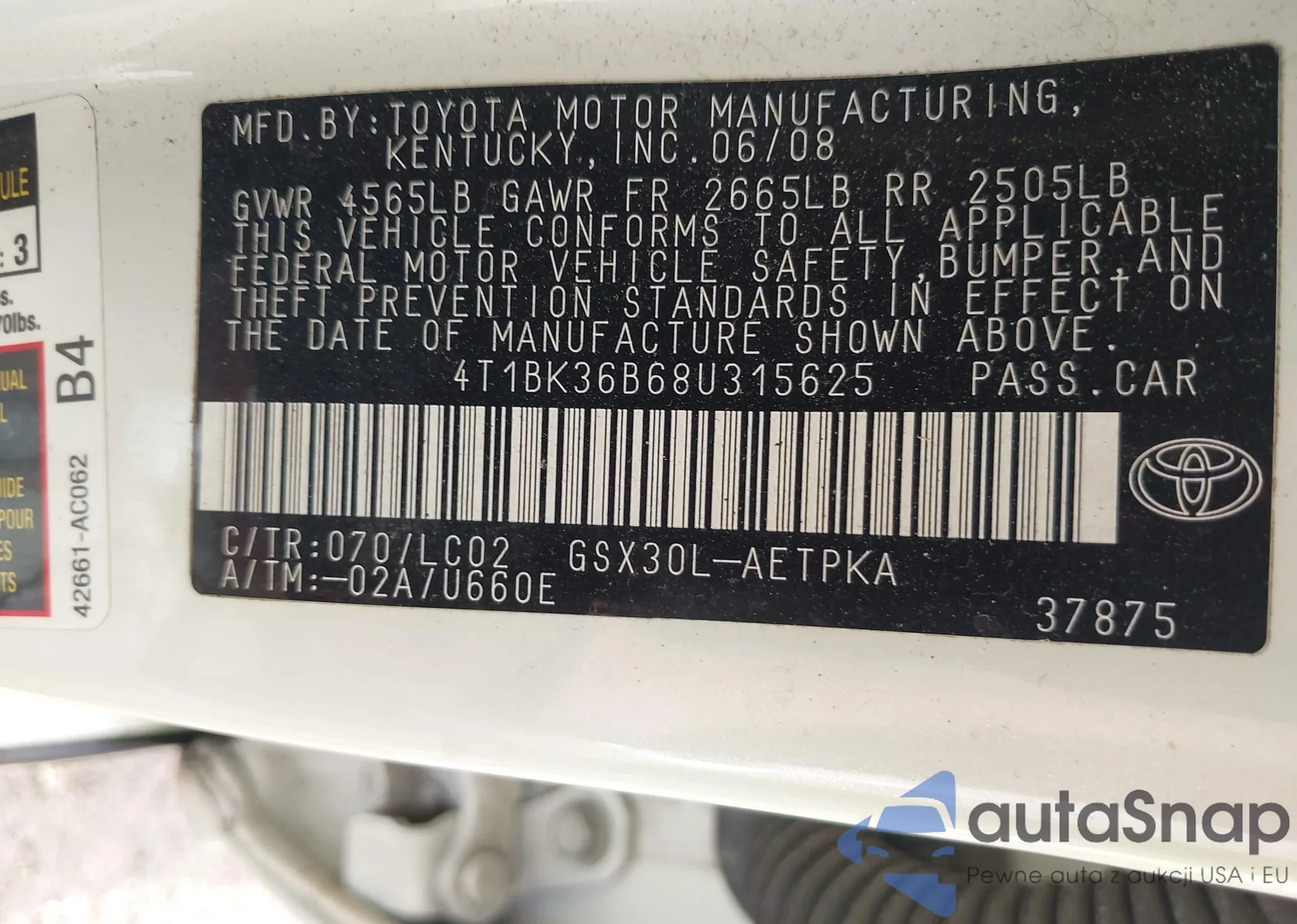 LOT: 42189907 VIN: KL1TD66676B517803