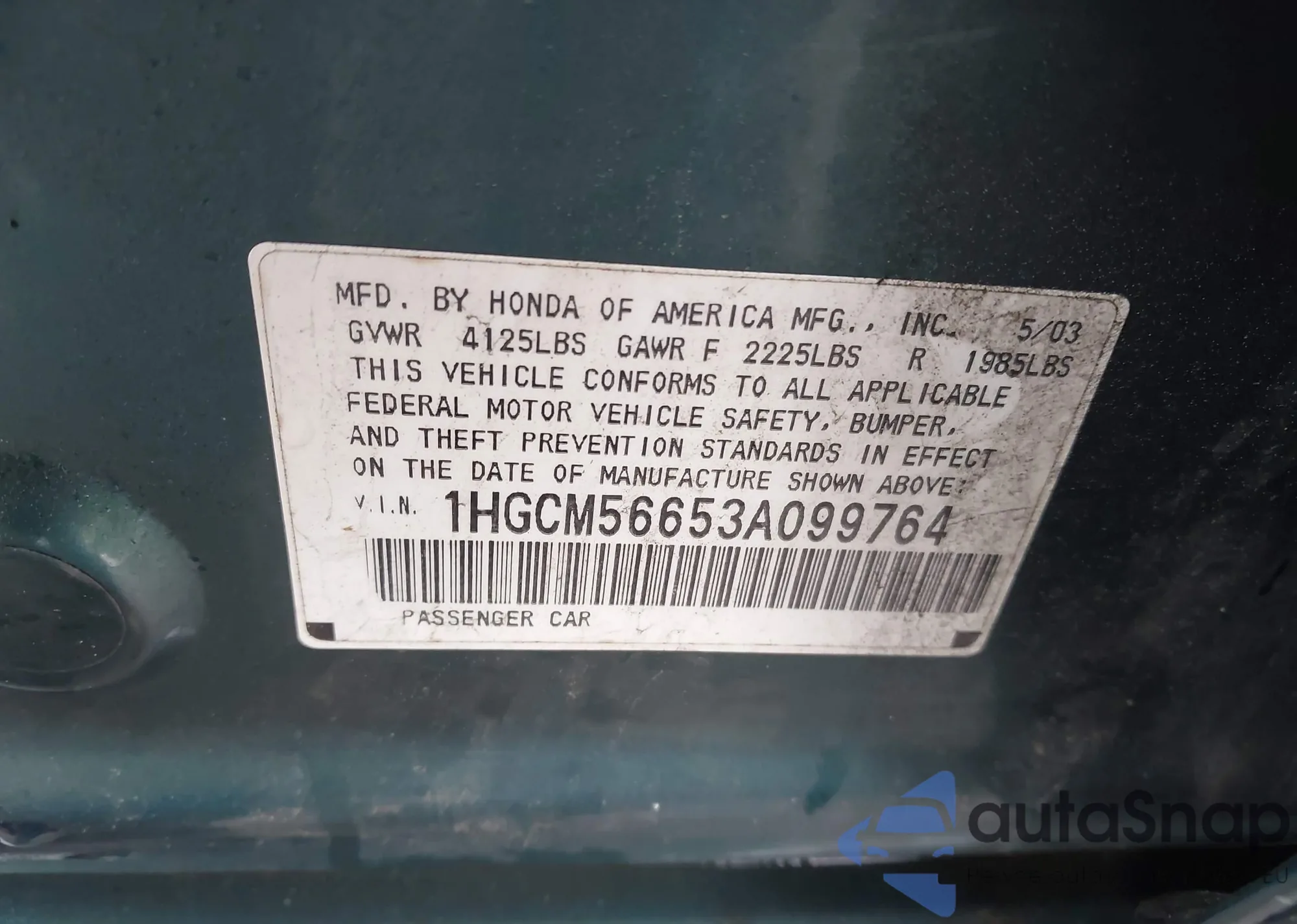 LOT: 42319389 VIN: 1HGCM56653A099764