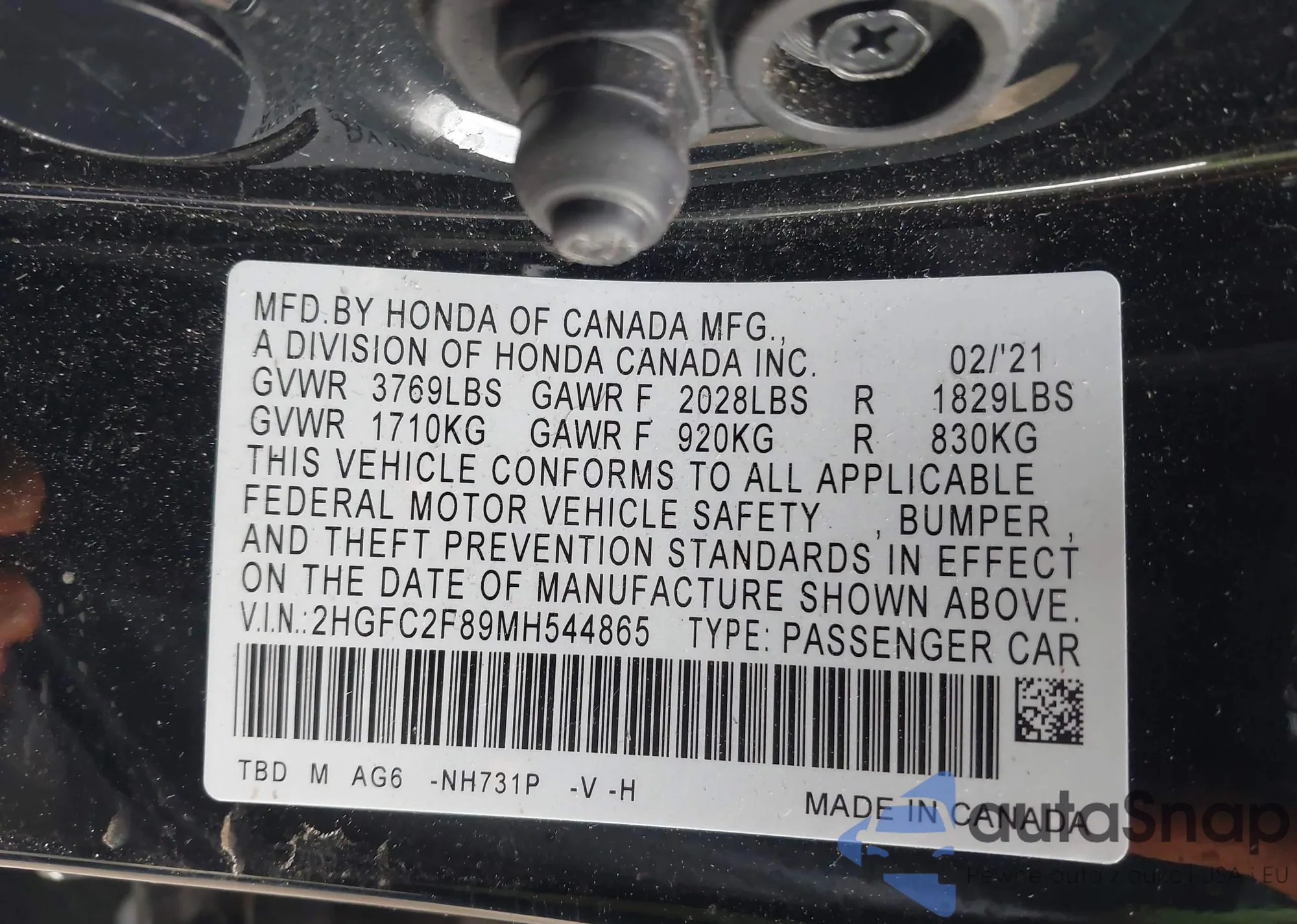 LOT: 42353383 VIN: 19XFA16589E023563
