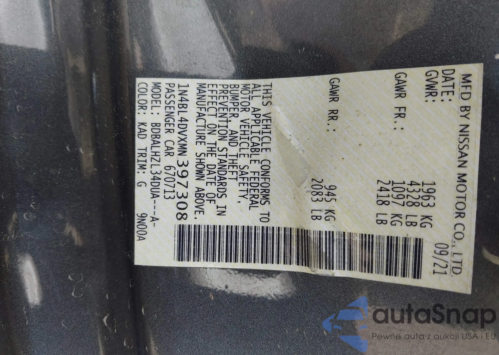 • VIN 1N4BL4DW6NN366681