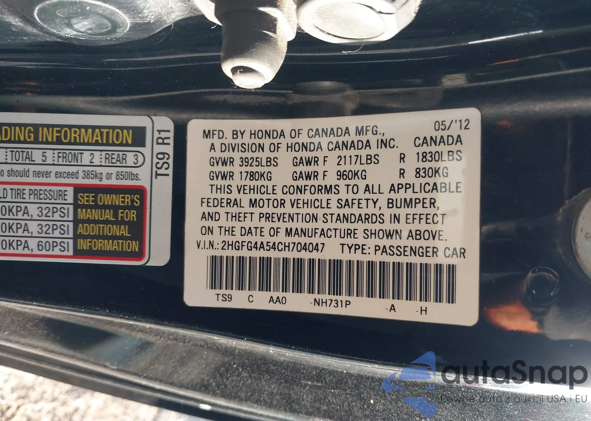 LOT: 41993538 VIN: 1HGCM72686A000618