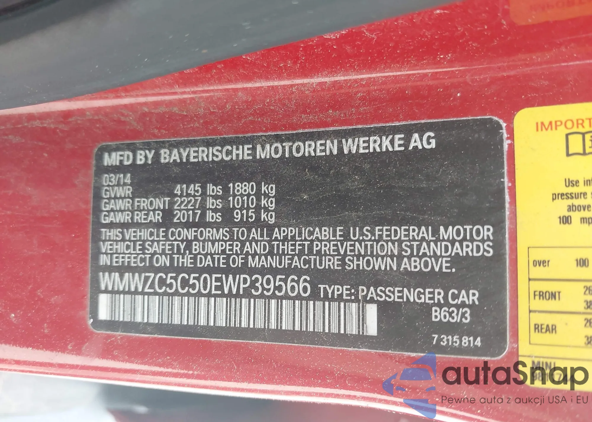 • VIN WMWZC5C50EWP39566