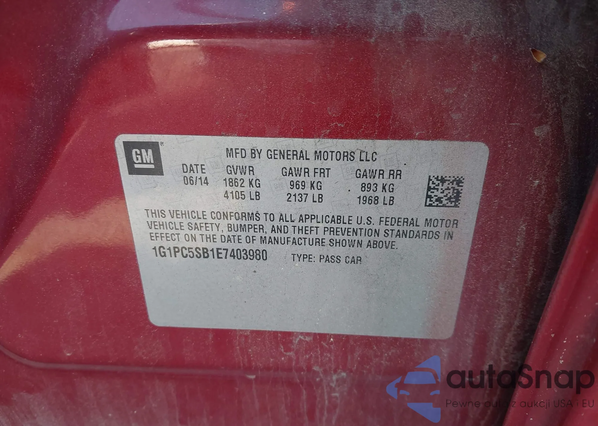 LOT: 41969383 VIN: 1G1PC5SB1E7403980