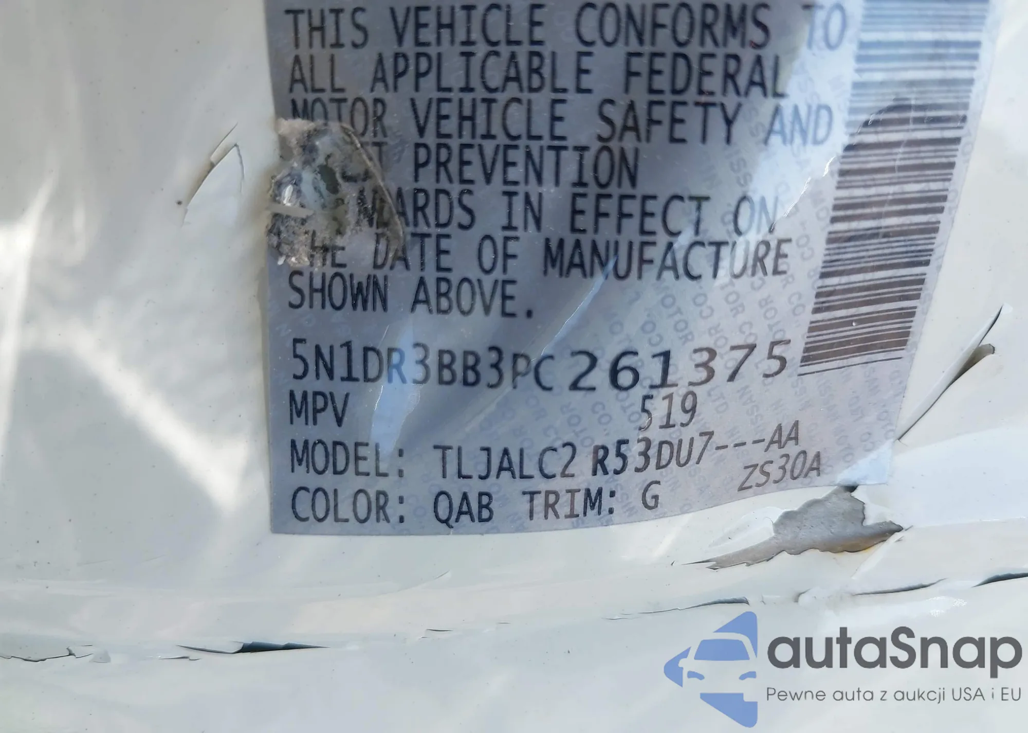 • VIN 5N1DR3BB3PC261375