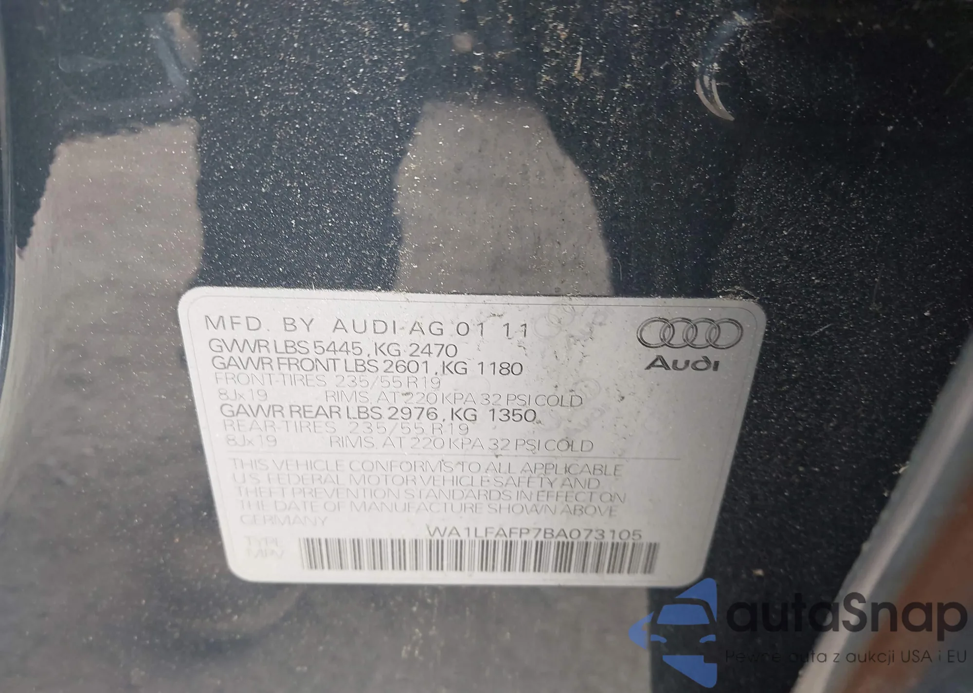 • VIN WA1LFAFP7BA073105