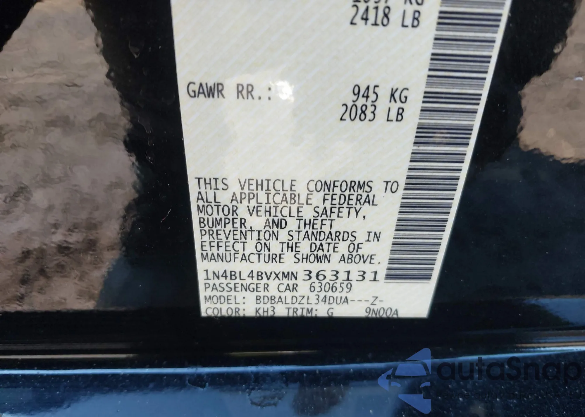 LOT: 42261898 VIN: WBAHN83518DT86472