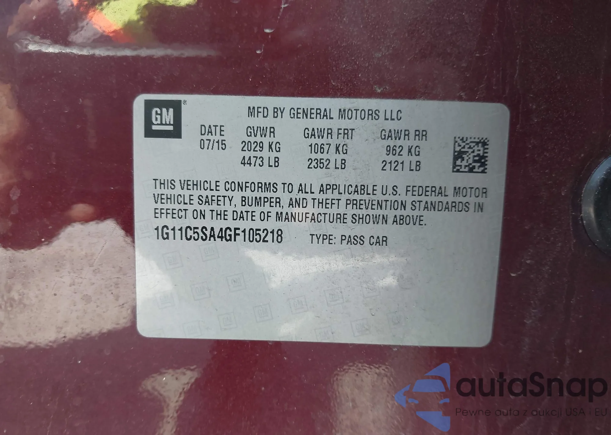 LOT: 41941028 VIN: 1G11C5SA4GF105218