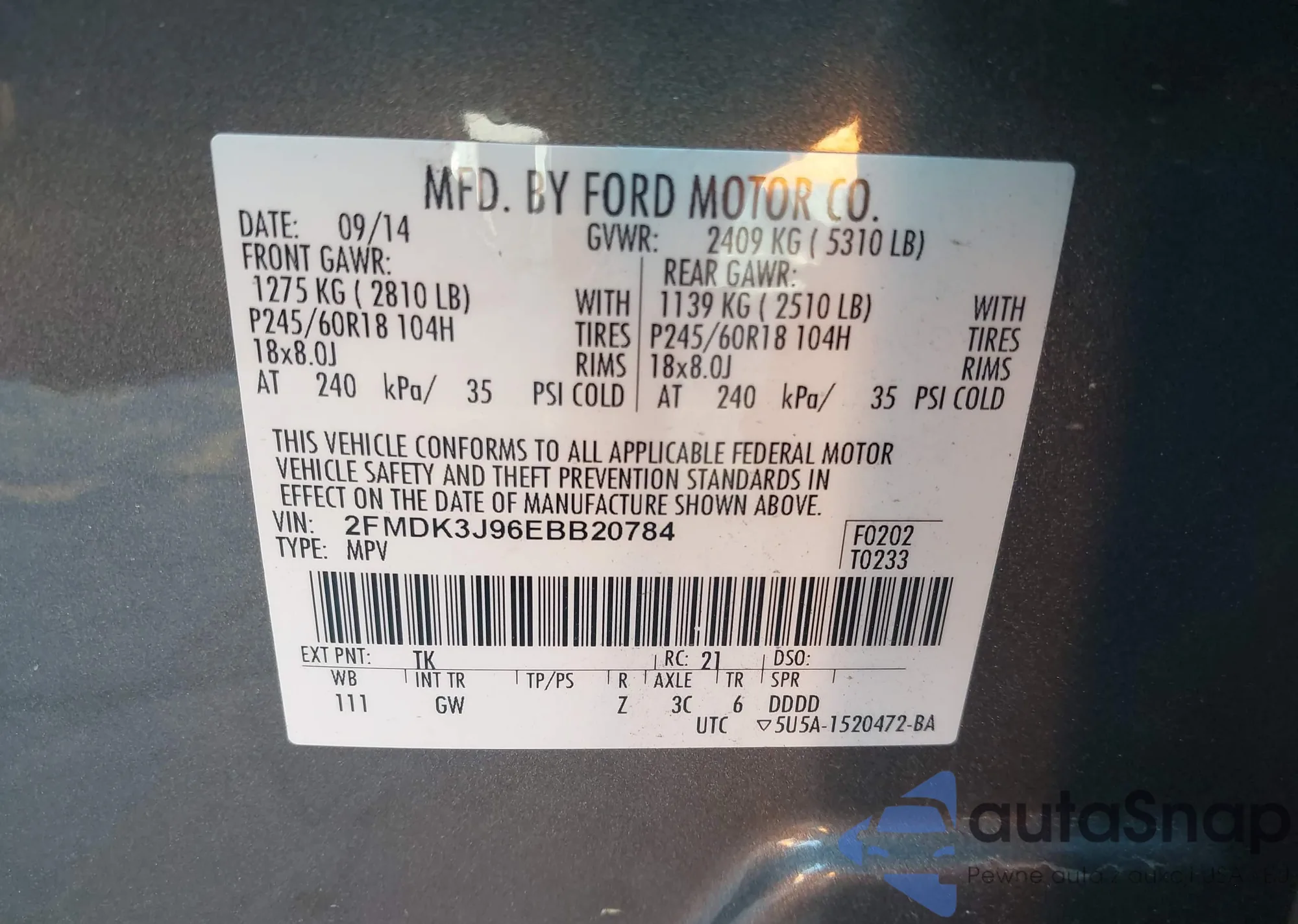 • VIN 3GKALPEV4KL158442