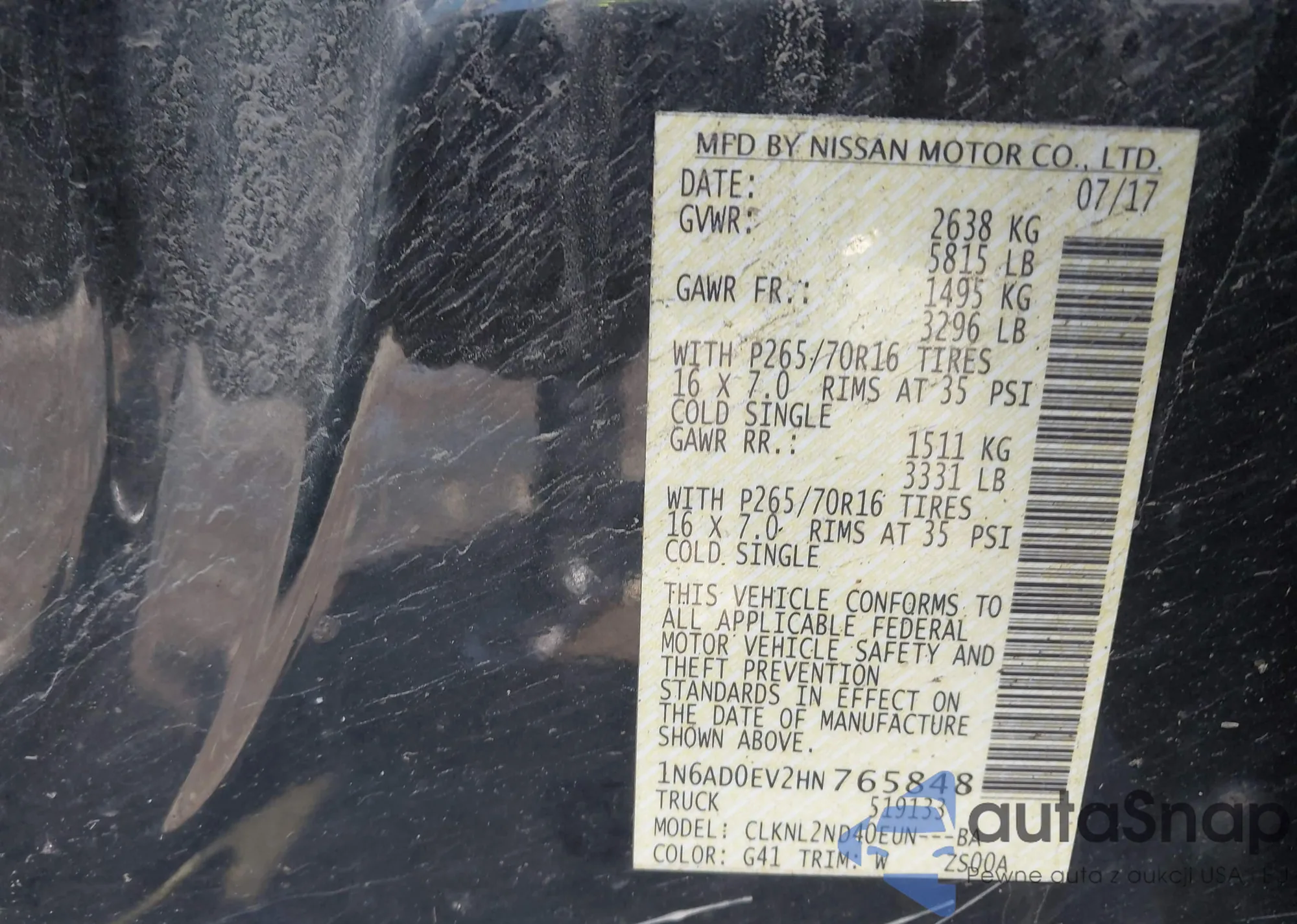 • VIN 1N6AD0EV2HN765848