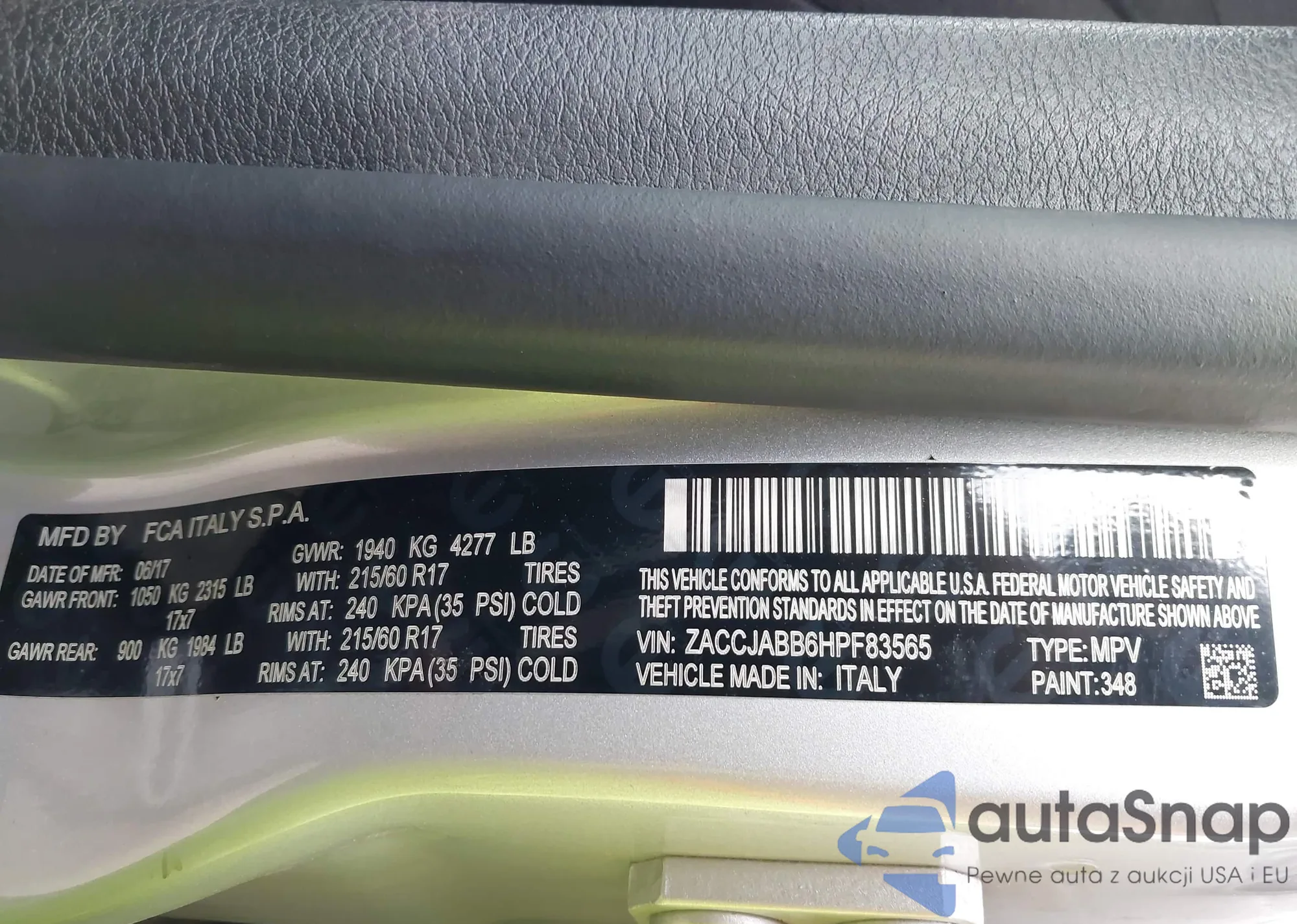 • VIN ZACCJABB6HPF83565