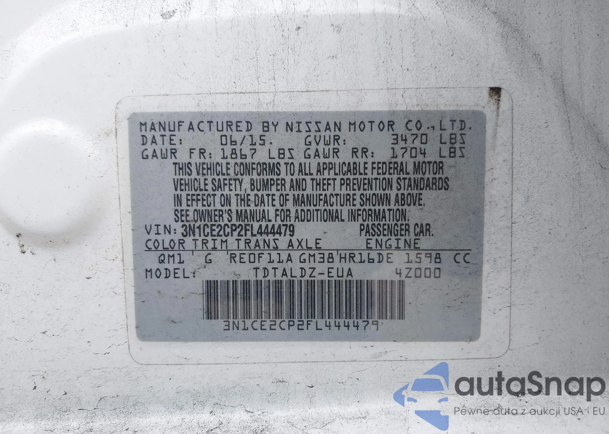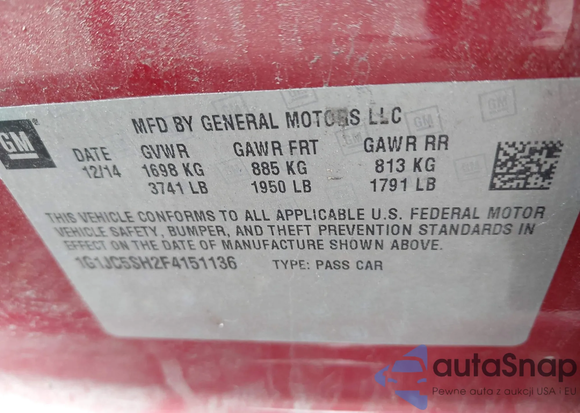 LOT: 42384412 VIN: 1G1JC5SH2F4151136
