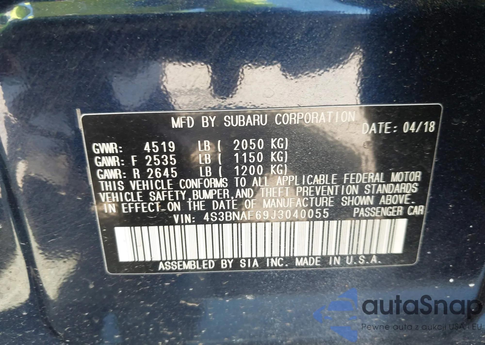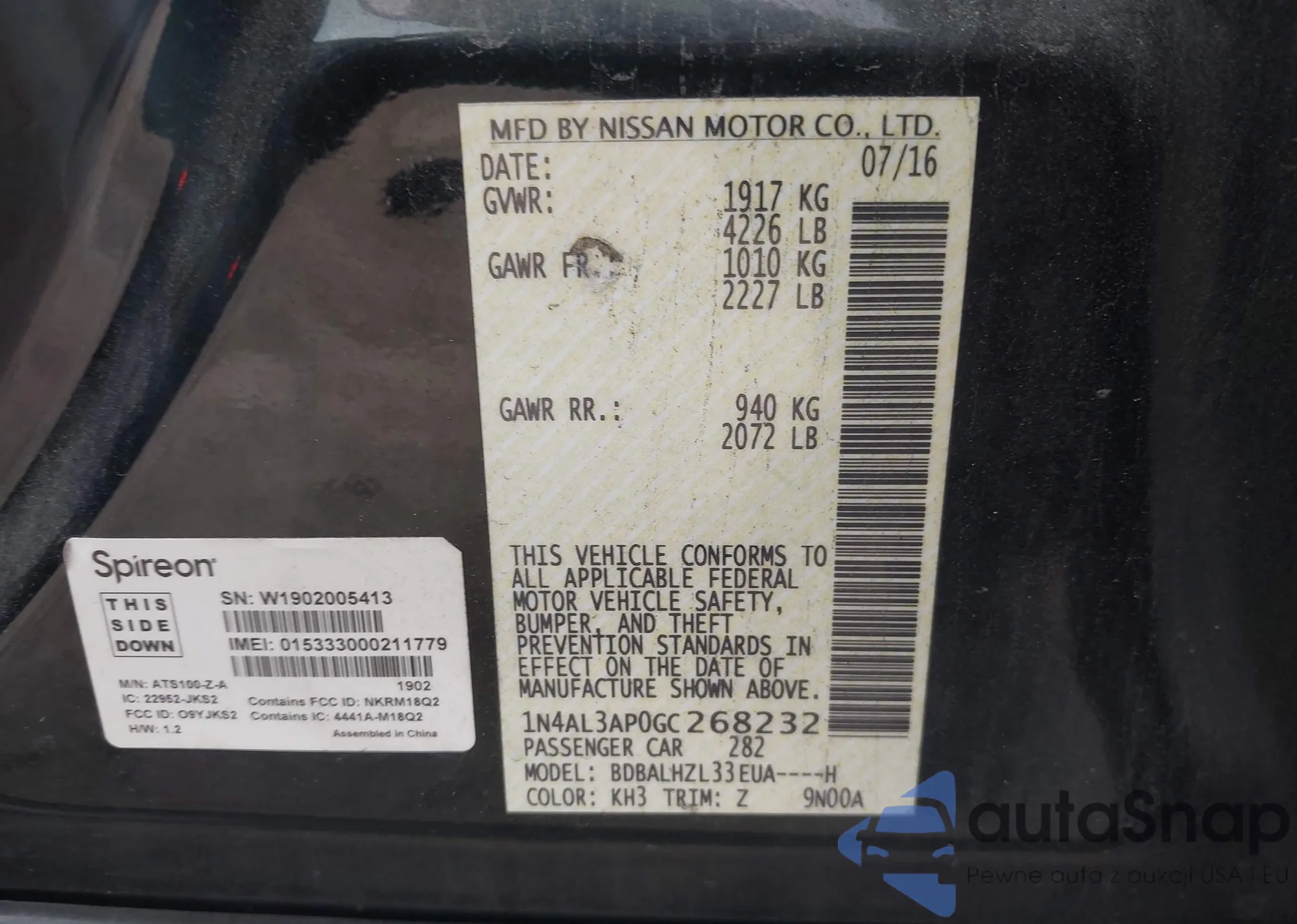 • VIN 1N4AL3AP4DN478204