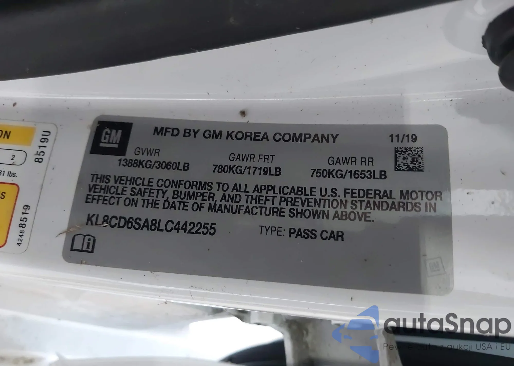 • VIN KL8CD6SA8LC442255