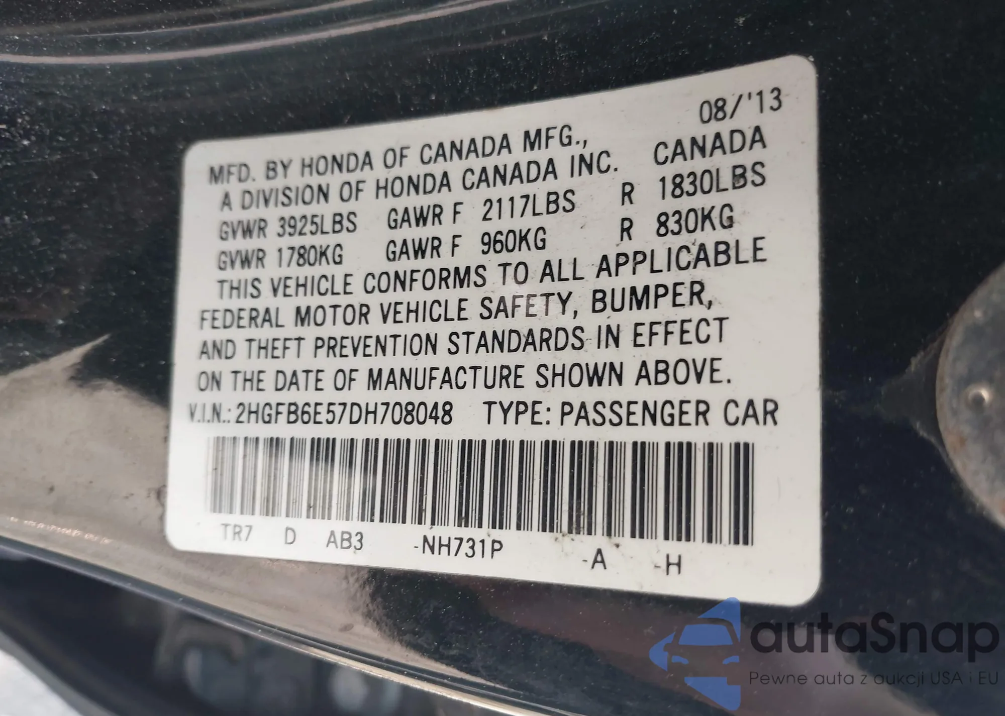 • VIN 2HGFB6E57DH708048
