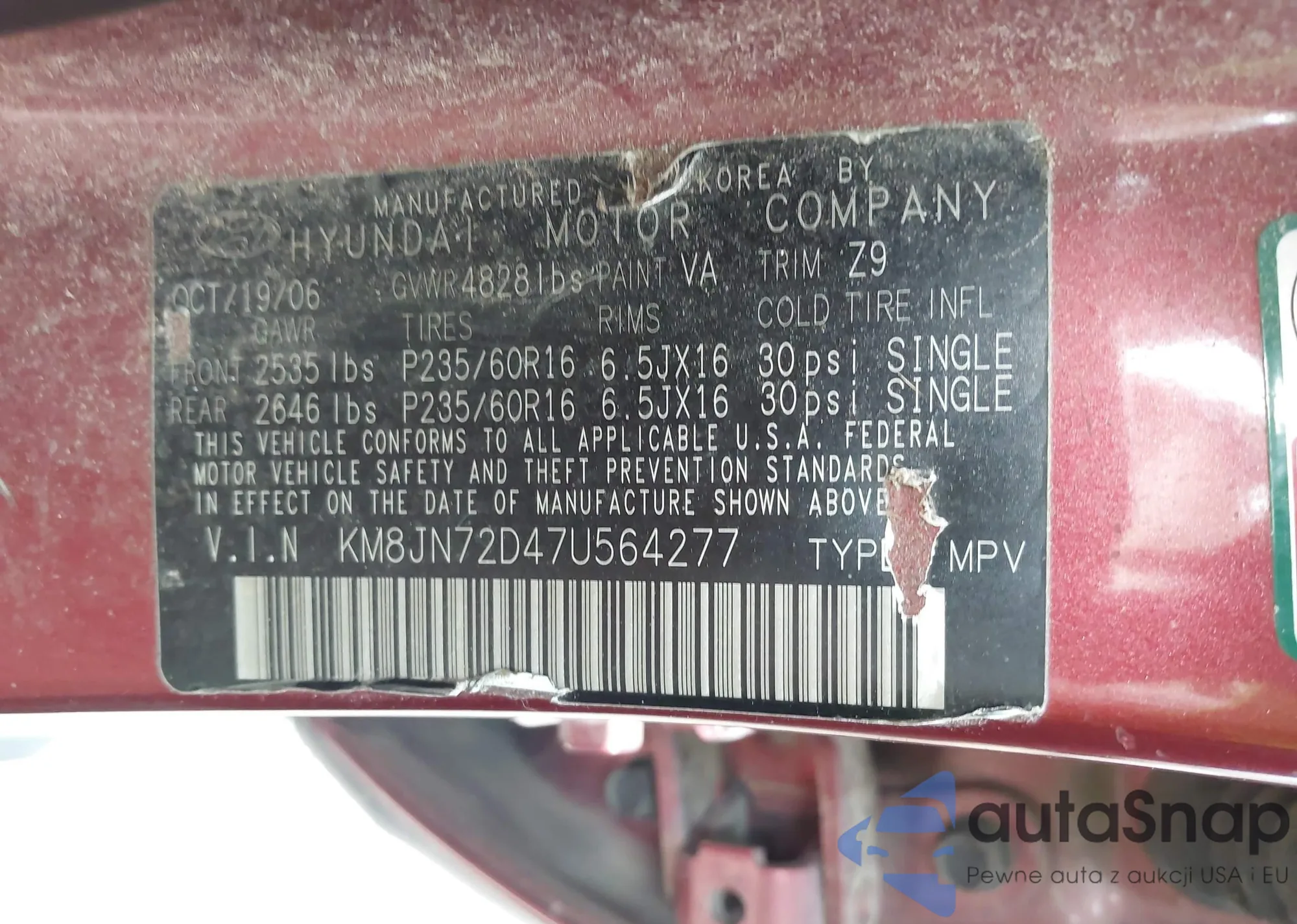 LOT: 41749618 VIN: KM8JN72D47U564277
