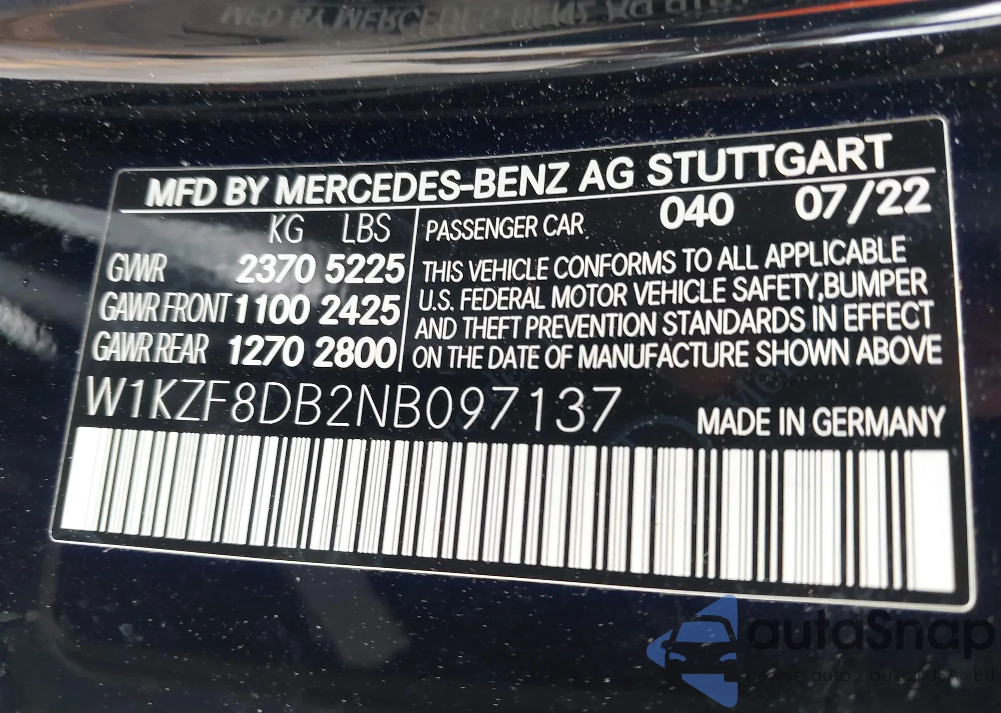 • VIN W1KZF8DB2NB097137