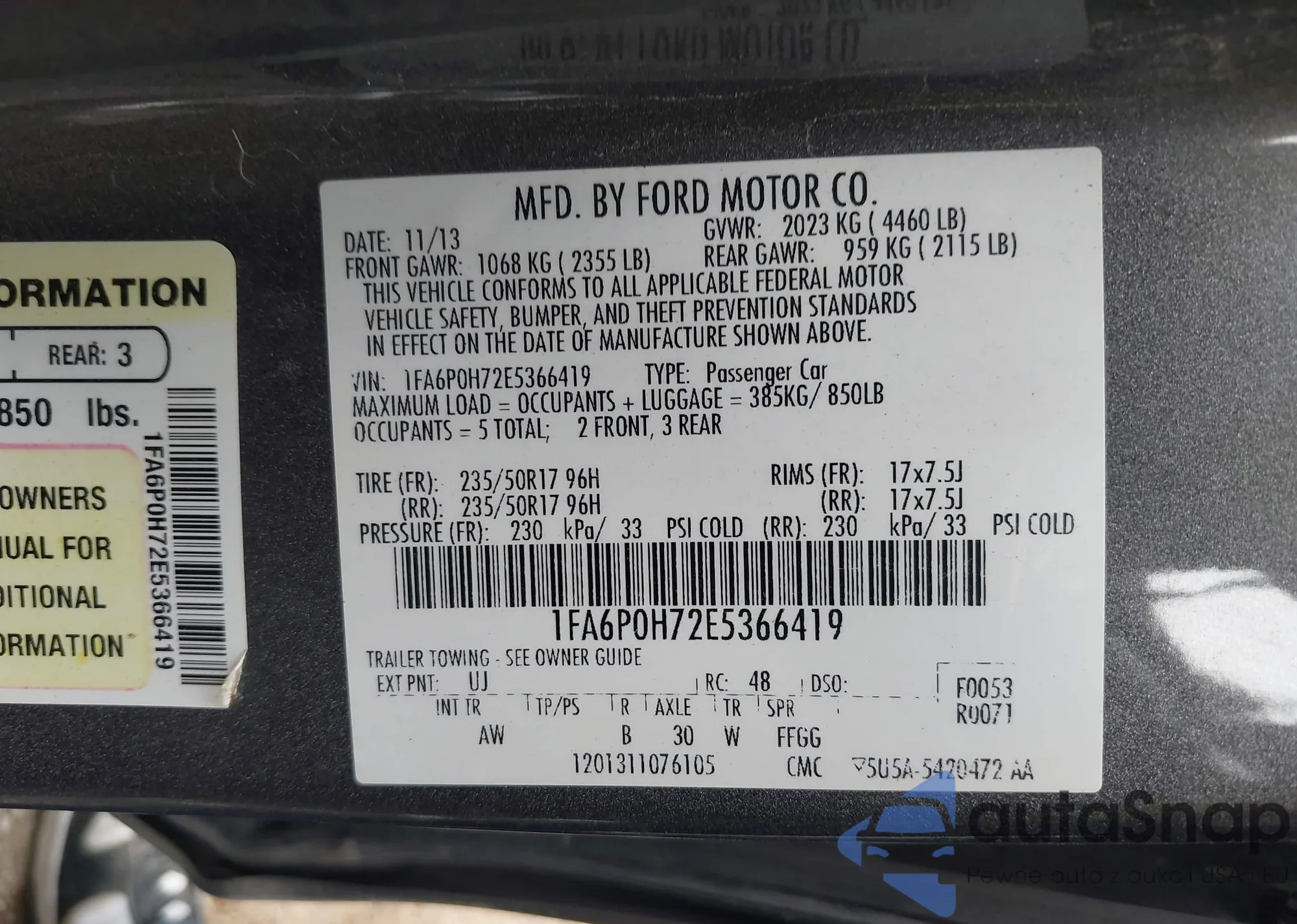 • VIN 1FA6P0H72E5366419