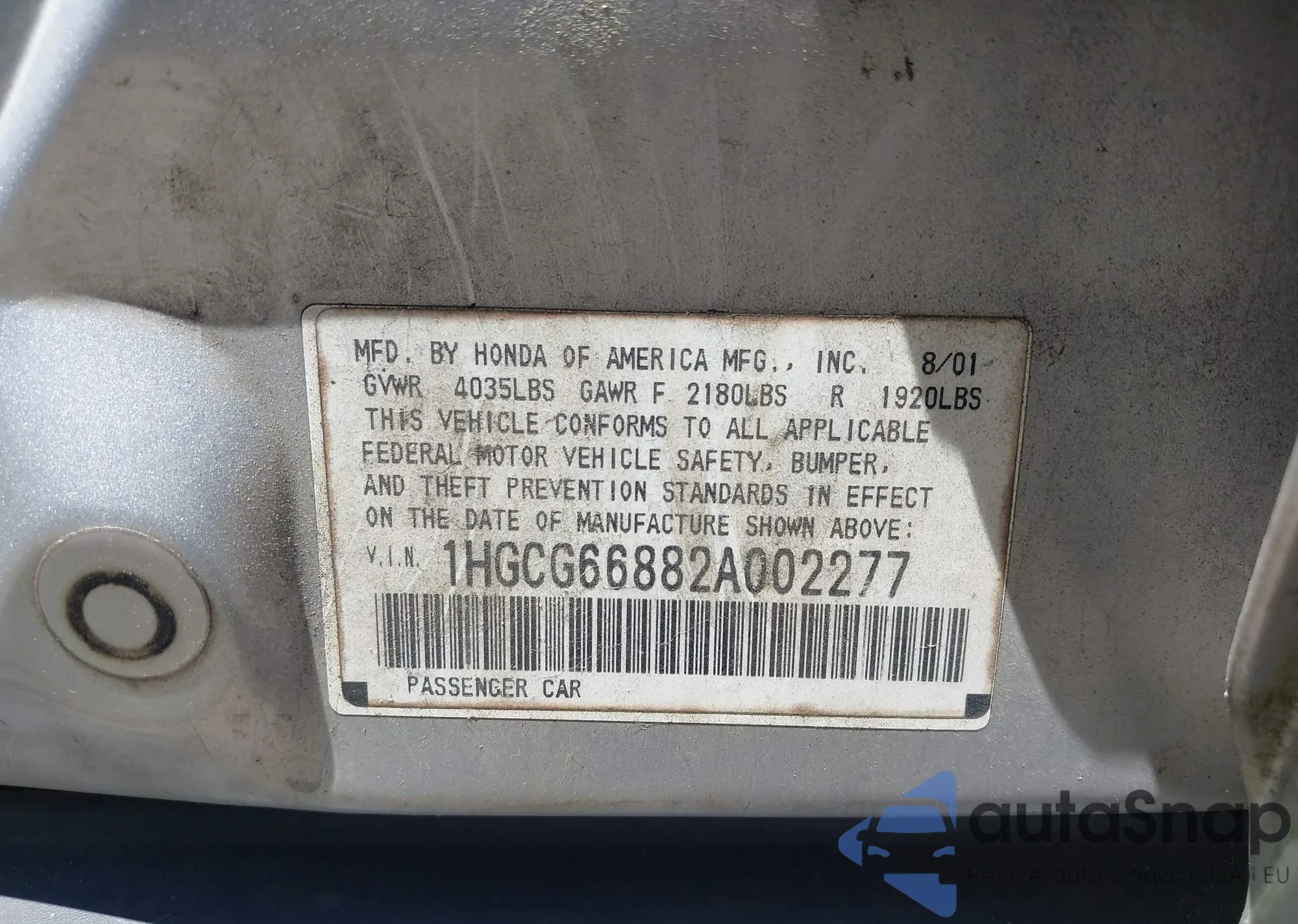 • VIN 1HGCG66882A002277