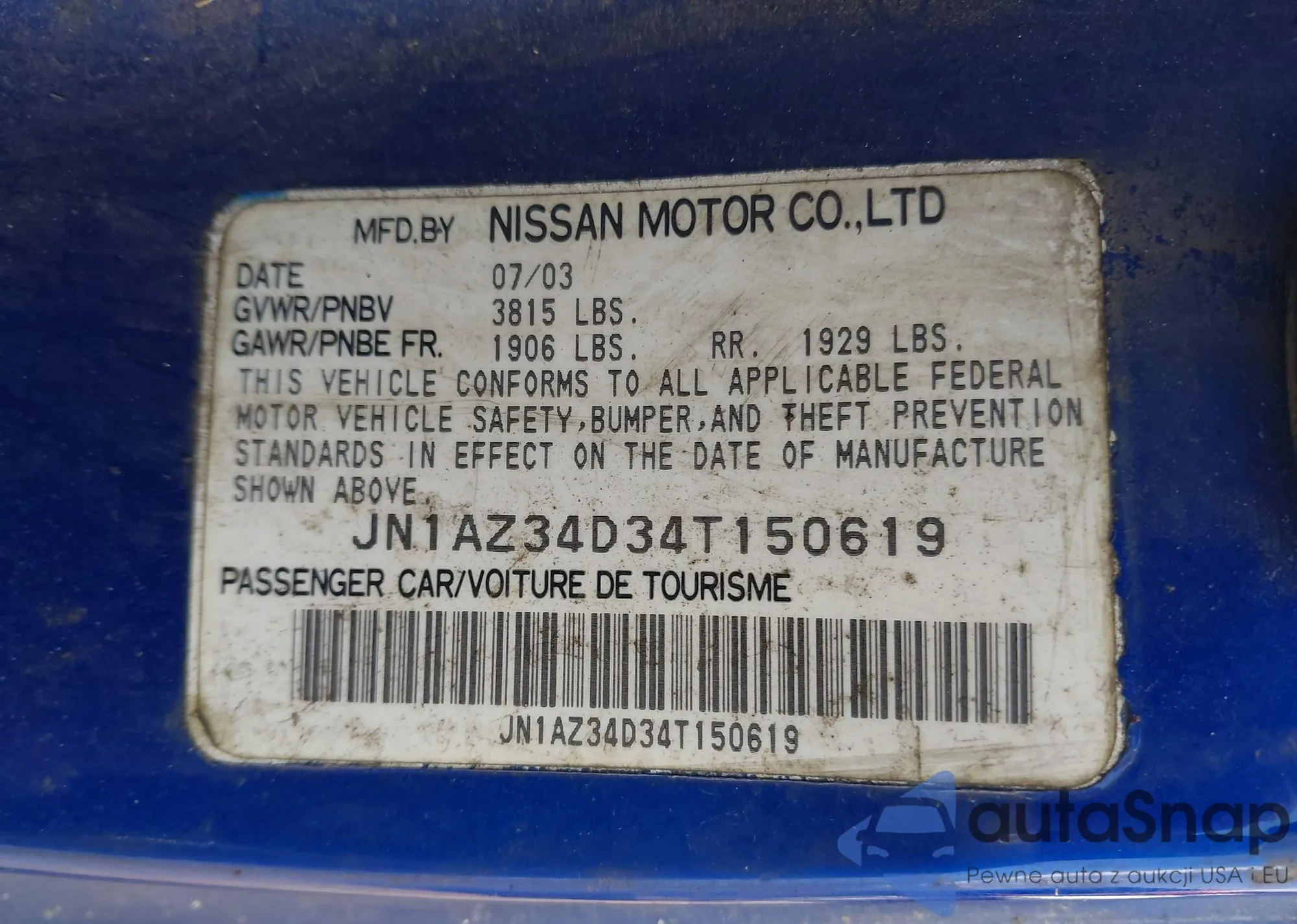 • VIN JN1AZ34D34T150619