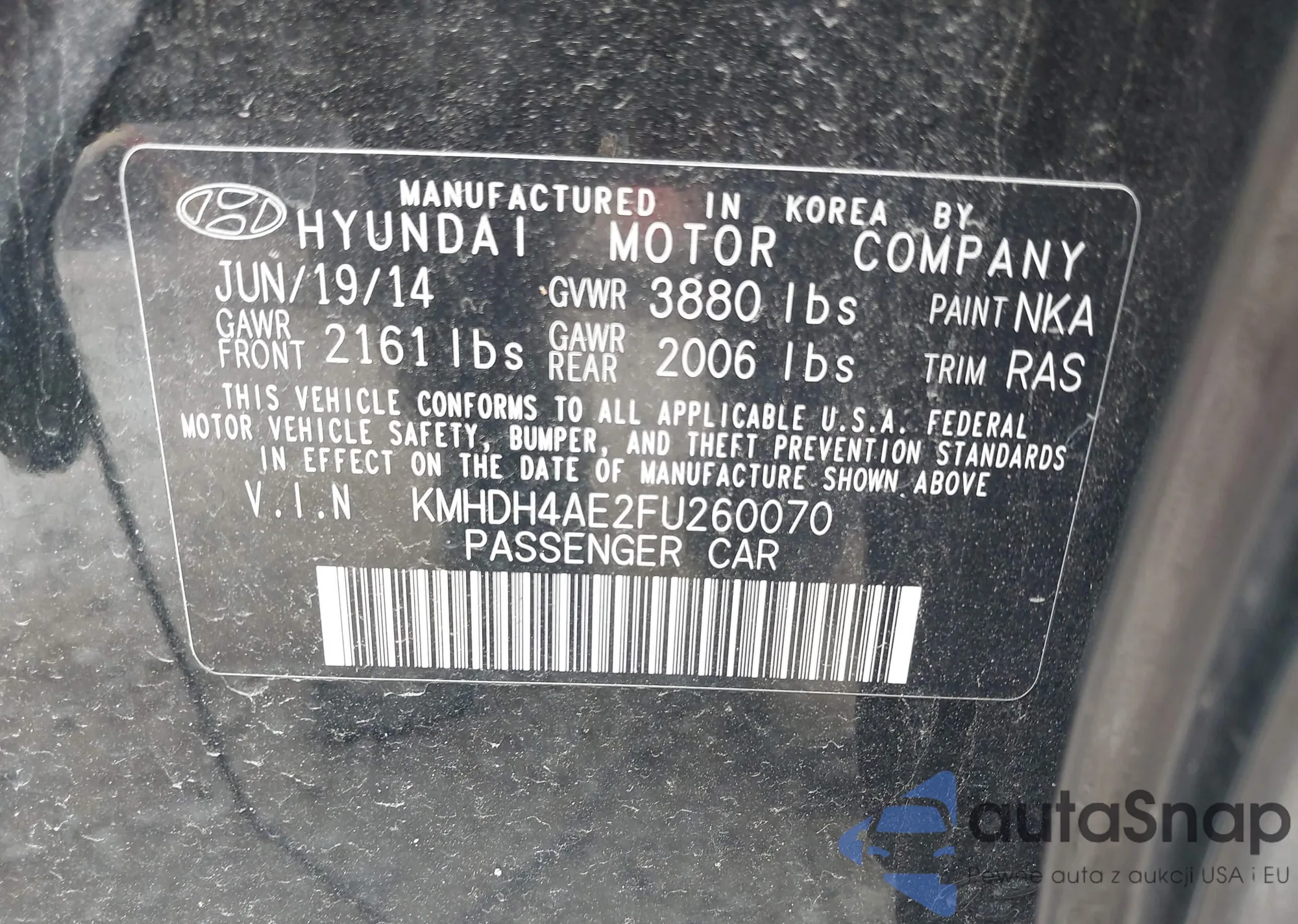 LOT: 42274834 VIN: KMHDH4AE2FU260070