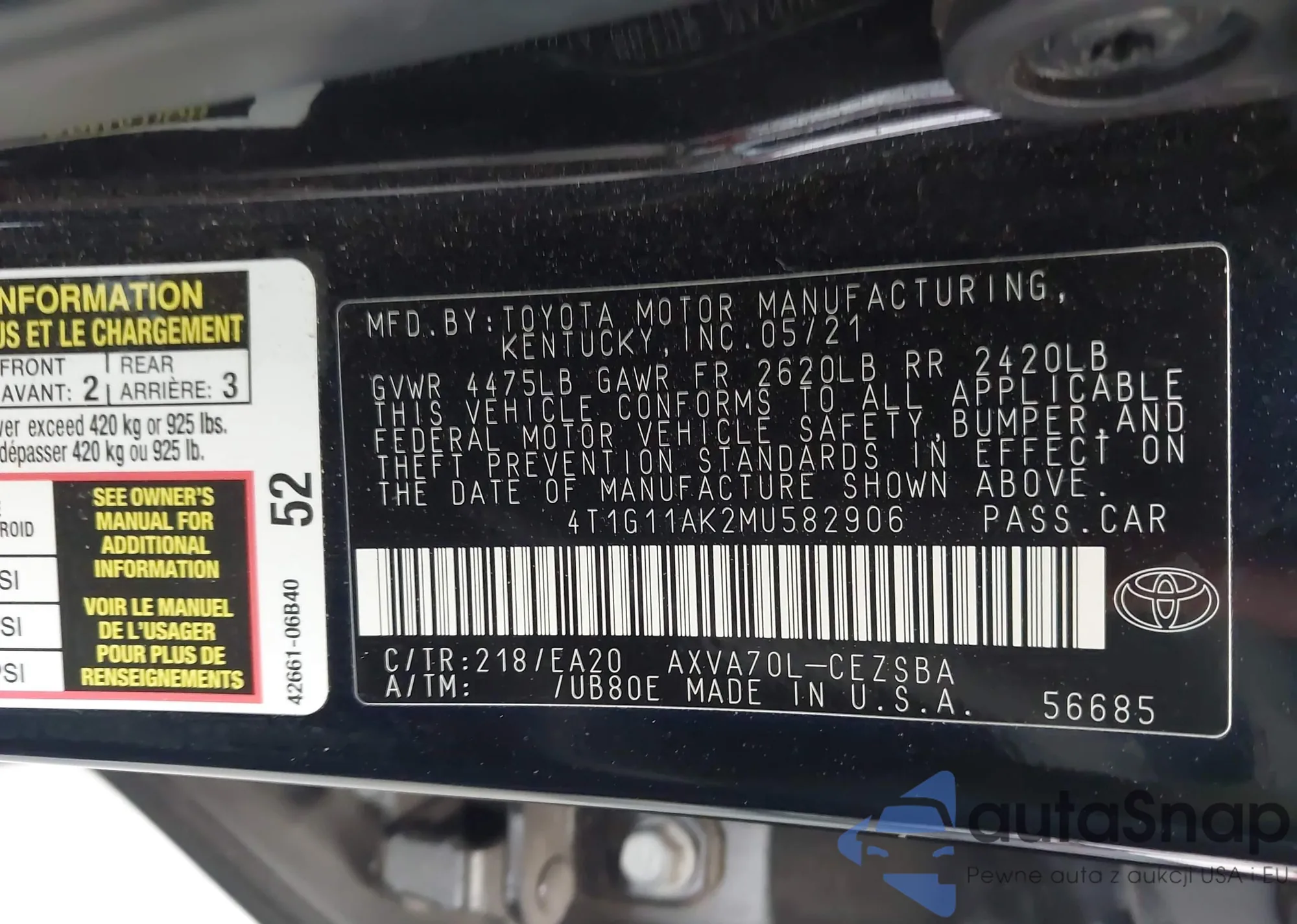LOT: 42208052 VIN: 4T1G11AK2MU582906