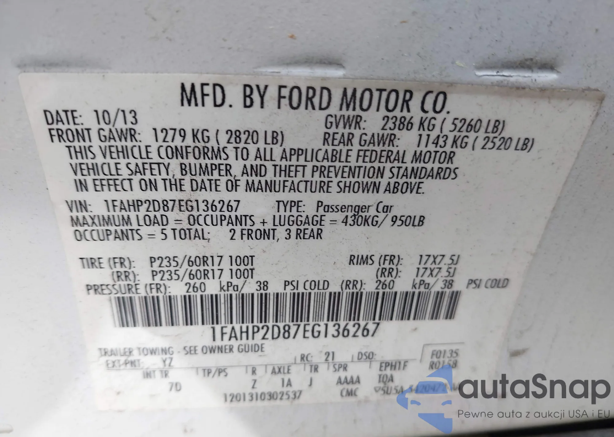 • VIN 1FAHP2D87EG136267