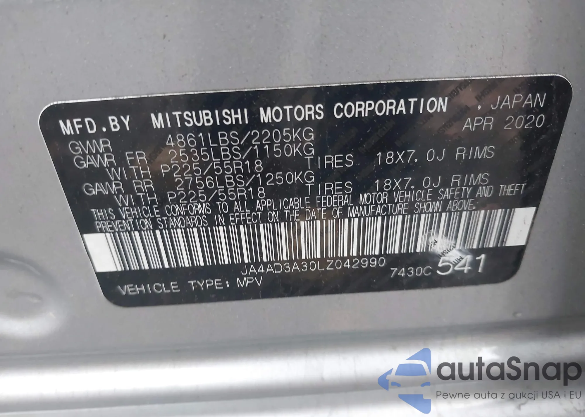 LOT: 42031733 VIN: SALZJ2FX1LH059030