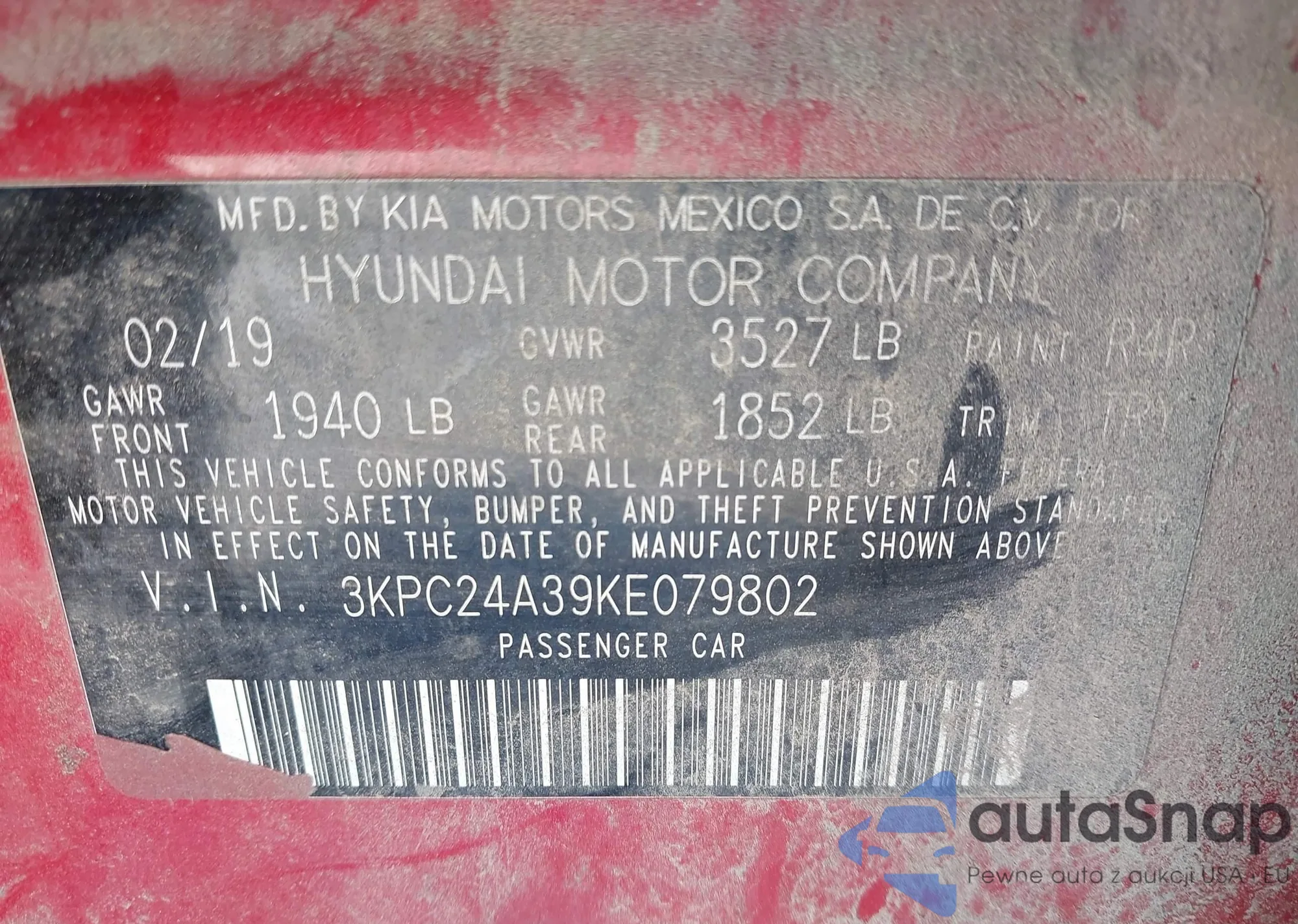 • VIN 3KPC24A39KE079802