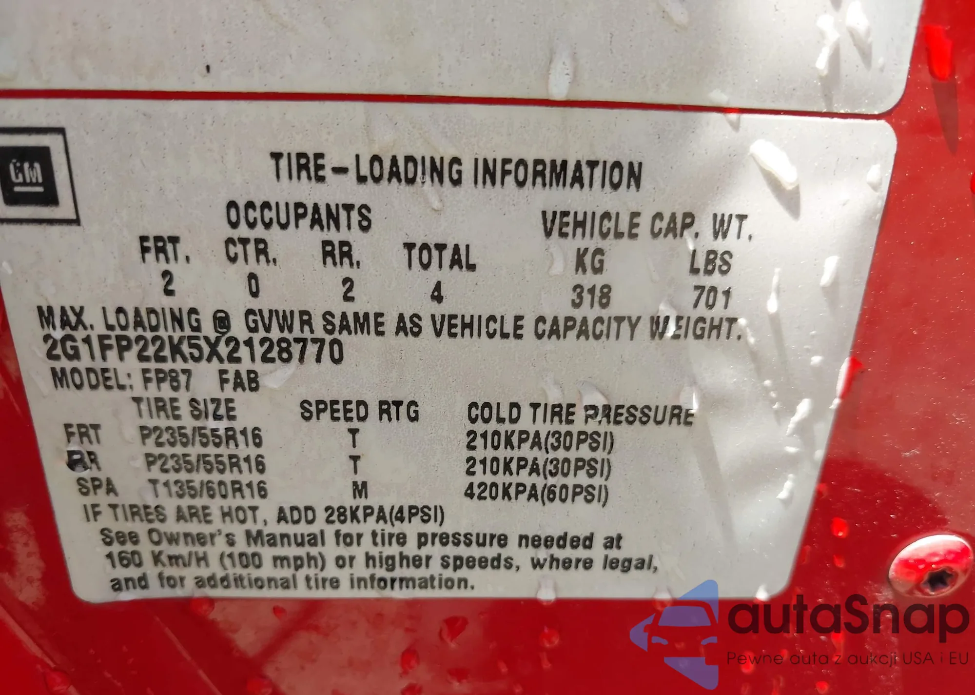 • VIN 2G1FP22K5X2128770