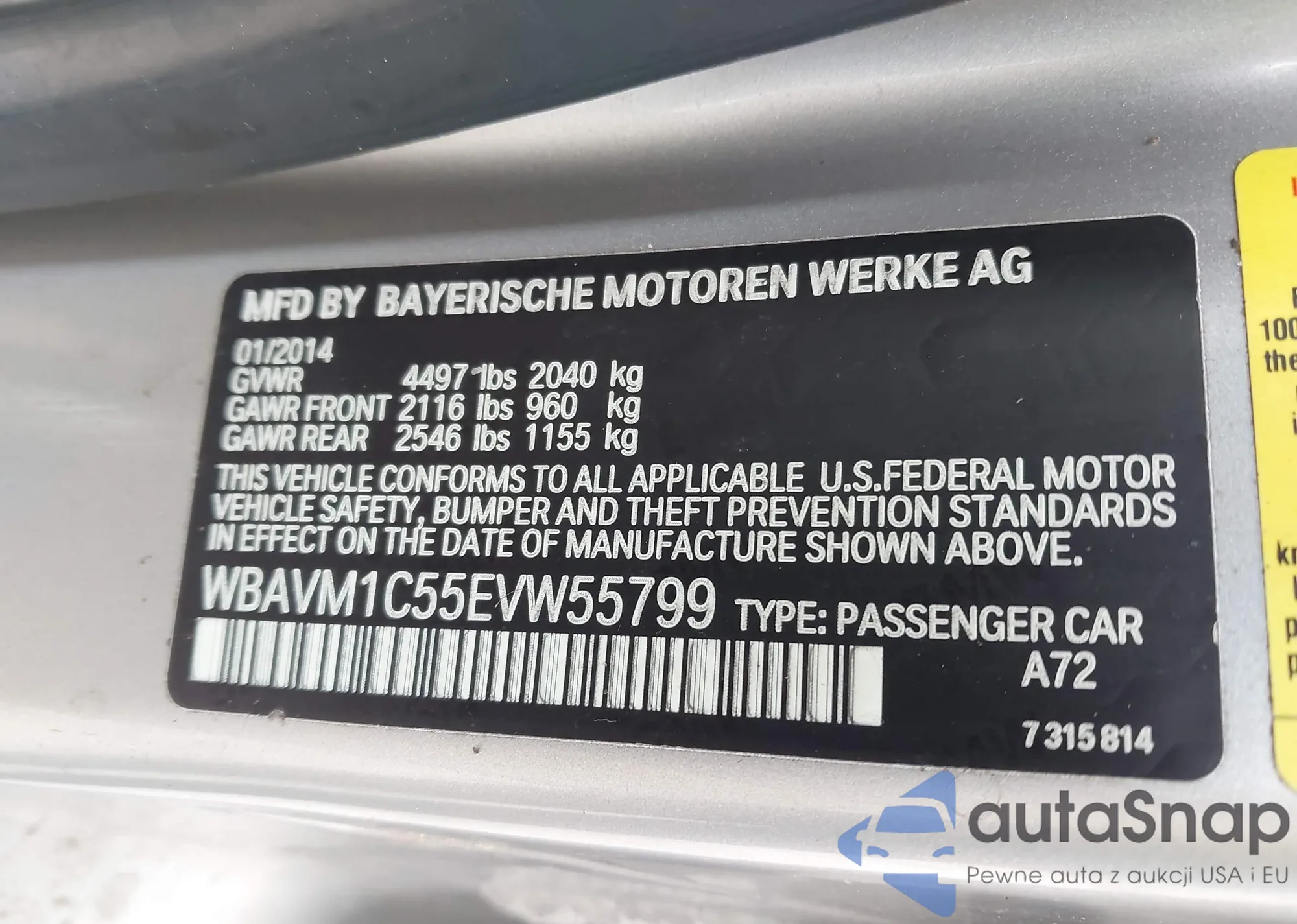 • VIN WBAVM1C55EVW55799