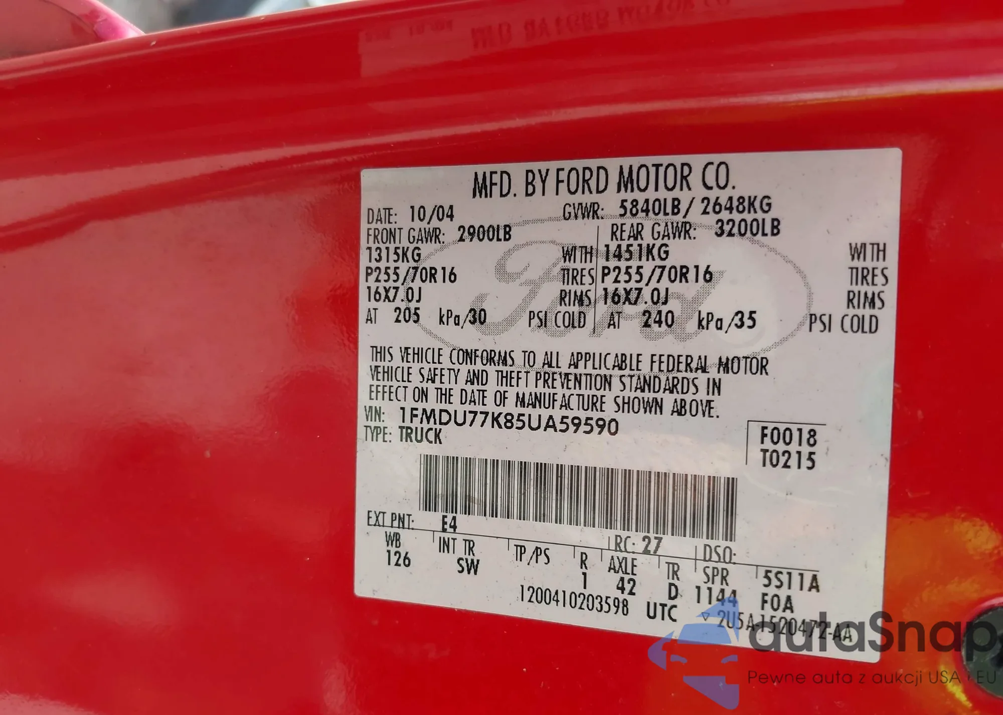 LOT: 42196206 VIN: 1FMDU77K85UA59590