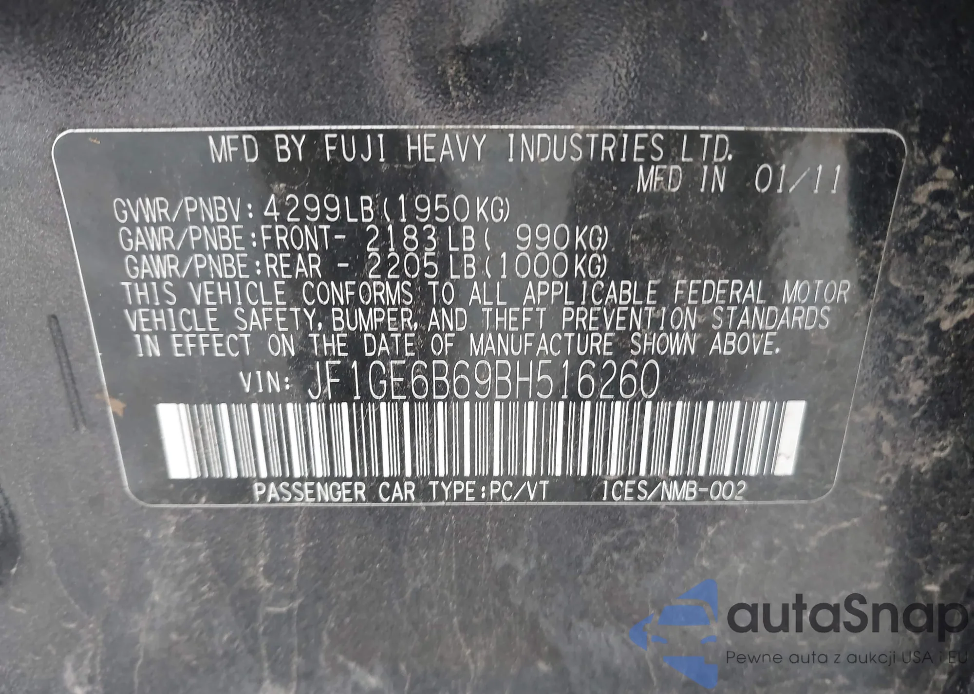• VIN JF1GE6B69BH516260