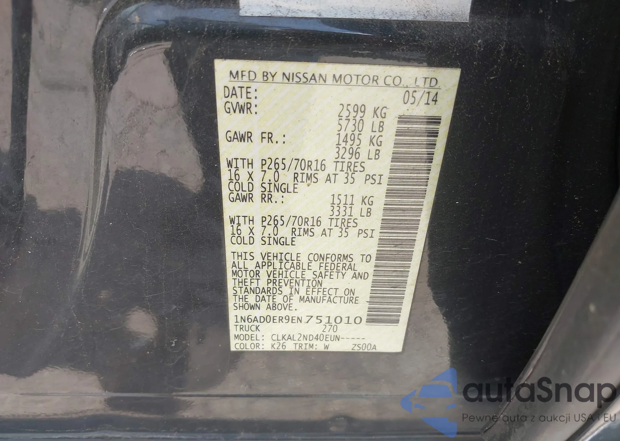 LOT: 42326309 VIN: 1N6AD0ER9EN751010