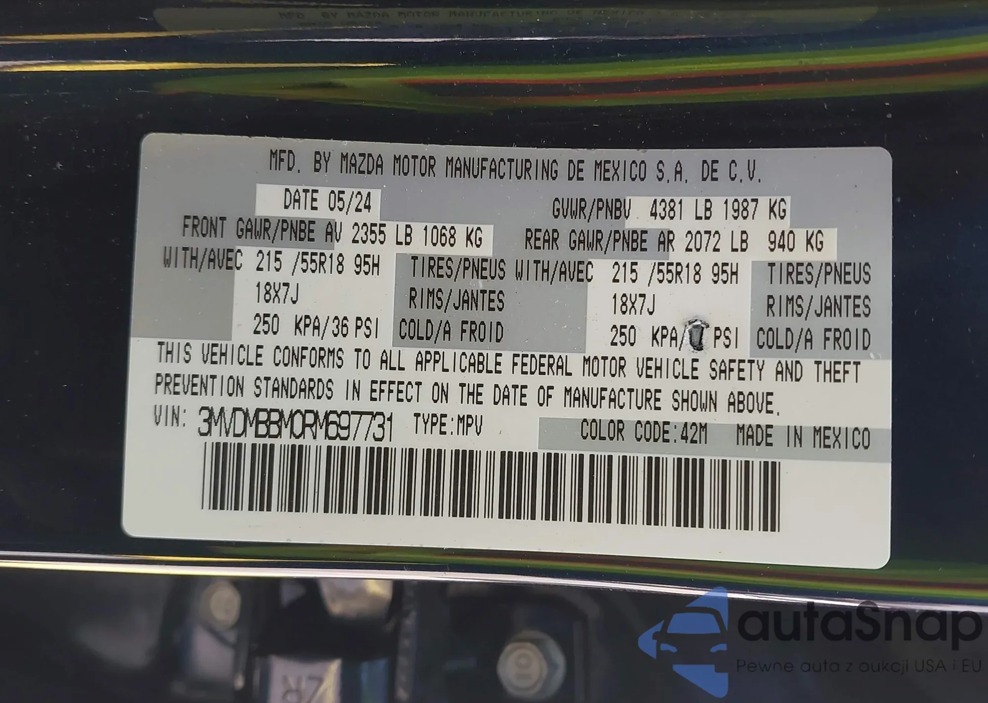 LOT: 42329490 VIN: 3MVDMBBM0RM697731