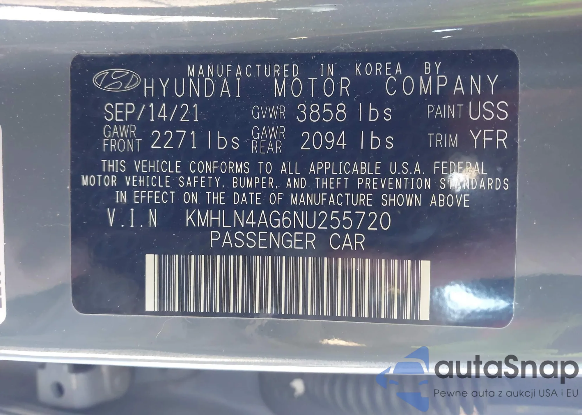 LOT: 41869170 VIN: KMHLN4AG6NU255720