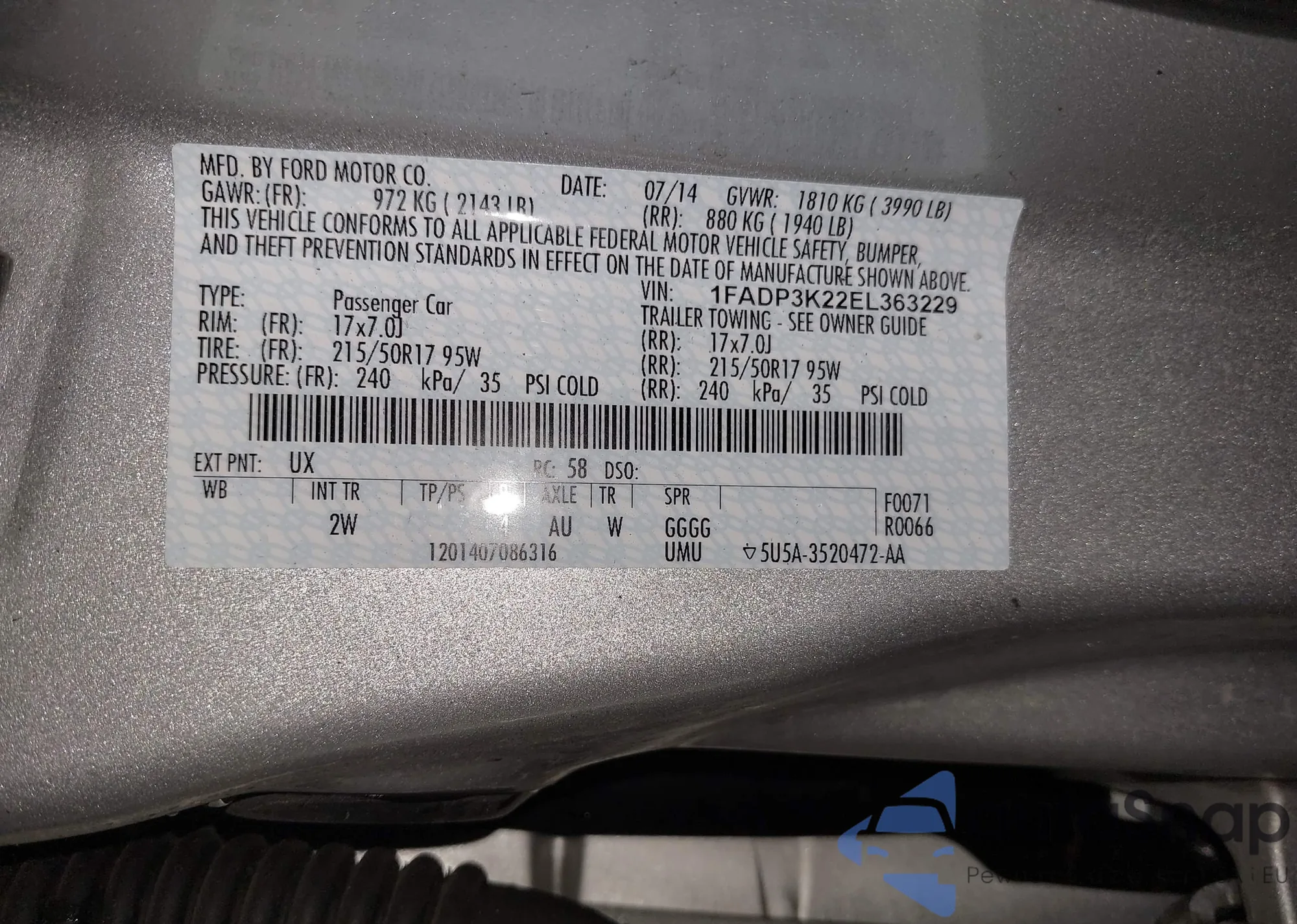 LOT: 42405663 VIN: 1FADP3K22EL363229
