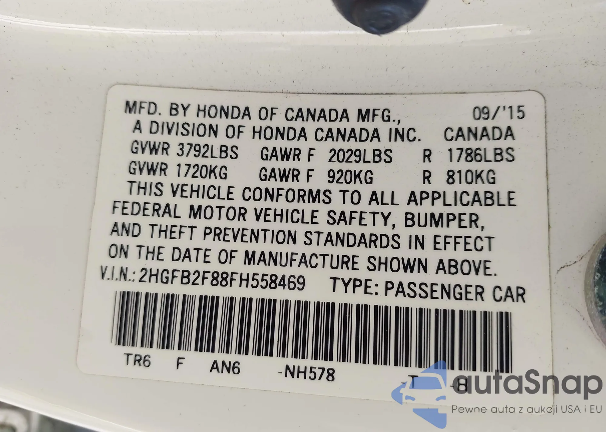 • VIN 2HGFB2F88FH558469